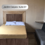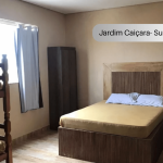 Suíte (quarto e banheiro) privativa. O imóvel possui uma cama casal, um beliche e um sofá-cama de solteiro, frigobar, forno micro-ondas, ventilador e TV. Comporta, somente, 5 pessoas. O imóvel fica no terceiro andar, sendo necessário subir escadas. Possui janela com vista para a rua. O endereço da hospedagem é: Rua Frei Henrique Coimbra, 158, Jardim Caiçara - Cabo Frio - RJ. Região com comércio. É exigida identificação pessoal. Wi-Fi gratuito