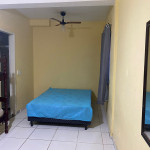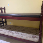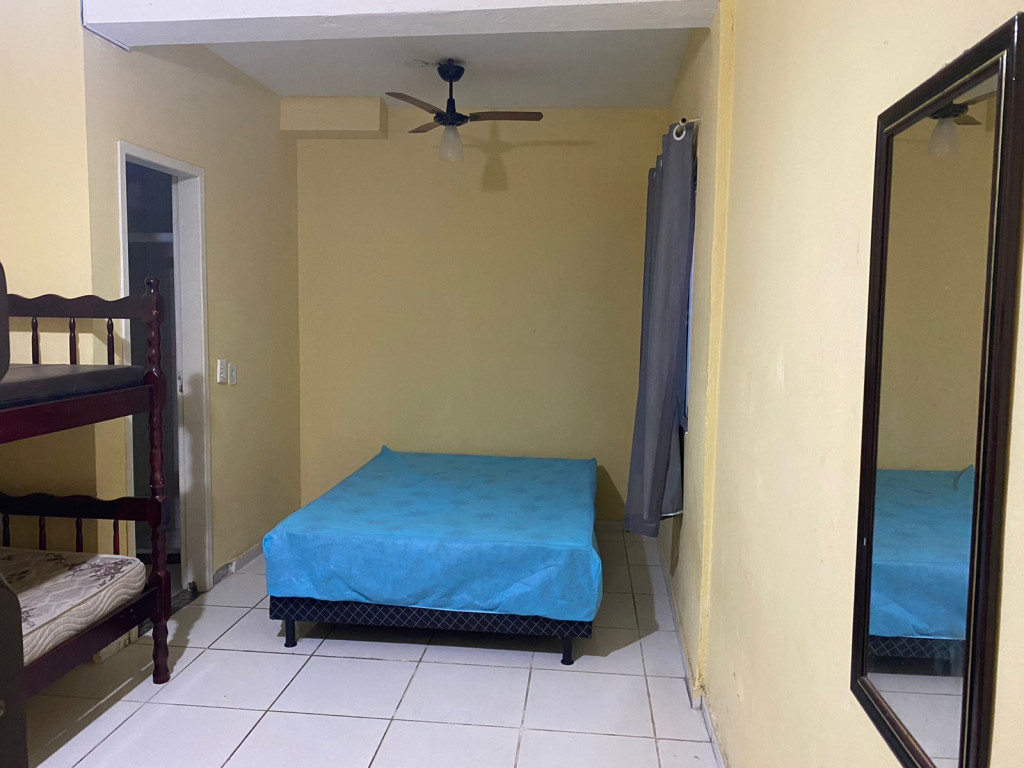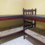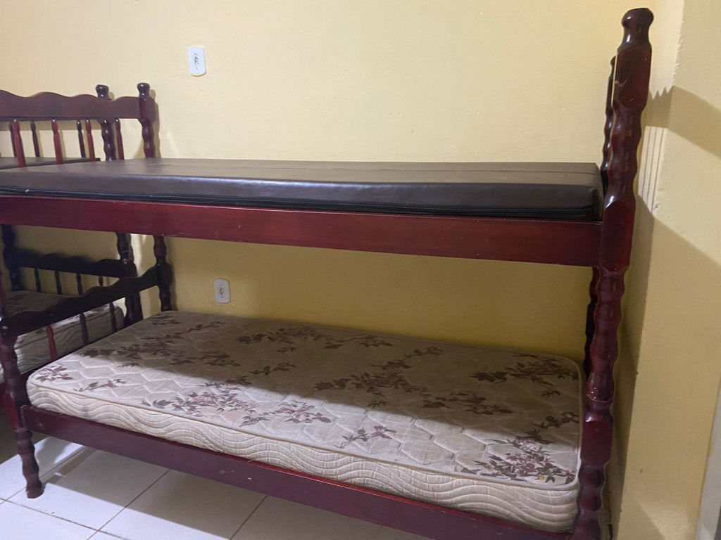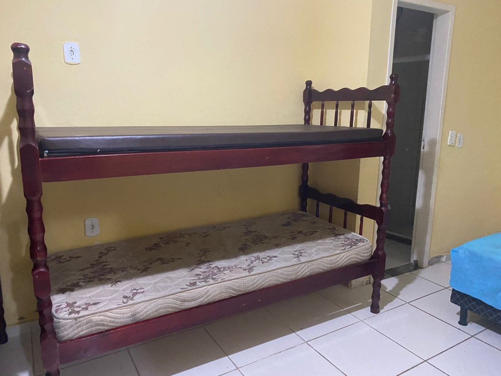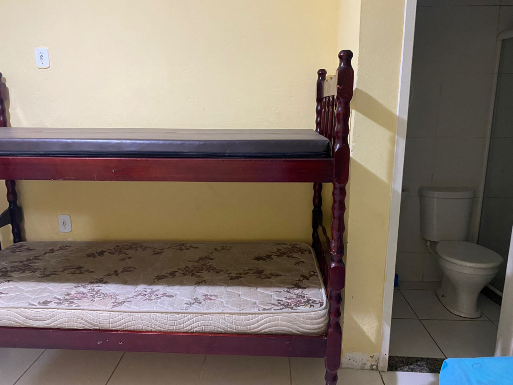 Suíte privativa com quarto e banheiro a 650 metros da Praia do Forte. Há cama de casal e 3 beliches (comporta 8 pessoas). Suíte privativa com ventilador, TV e frigobar. Cozinha compartilhada com fogão, forno micro-ondas e utensílios. Fica no segundo andar, sendo necessário subir escadas. O endereço da hospedagem é: Rua Gustavo Beranger, 102 - Vila Nova – Cabo Frio – RJ. Central, próximo ao comércio. Tem Wi-Fi gratuito. É exigida identificação pessoal e endereço do responsável pela reserva.