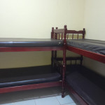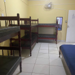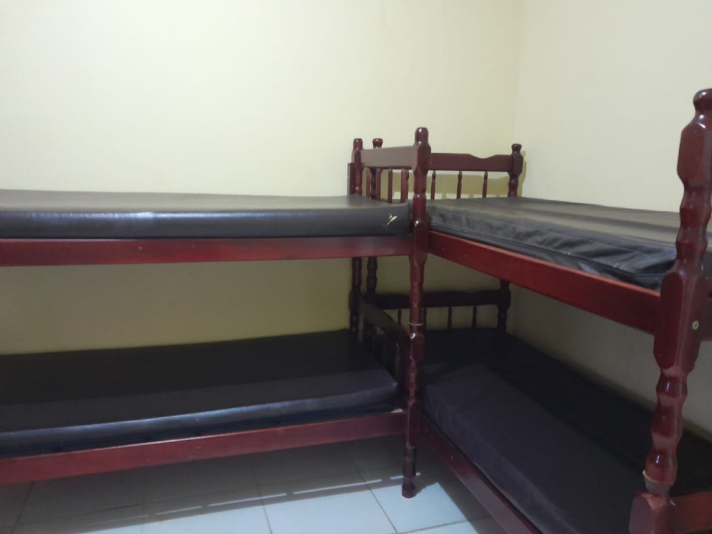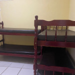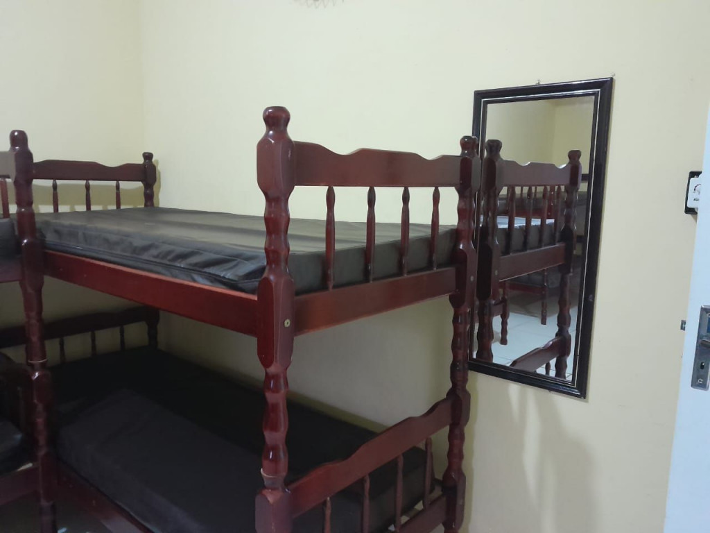 Suíte privativa com quarto e banheiro a 650 metros da Praia do Forte. Cama de casal e 3 beliches. Capacidade para 8 pessoas. Suíte privativa com ventilador, TV e frigobar. Cozinha compartilhada com fogão, forno micro-ondas e utensílios. Fica no terceiro andar, sendo necessário subir escadas. Endereço da hospedagem é: Rua Gustavo Beranger, 102 - Vila Nova – Cabo Frio – RJ. Central, próximo ao comércio. Tem Wi-Fi gratuito. É exigida identificação pessoal e endereço do responsável da reserva.