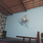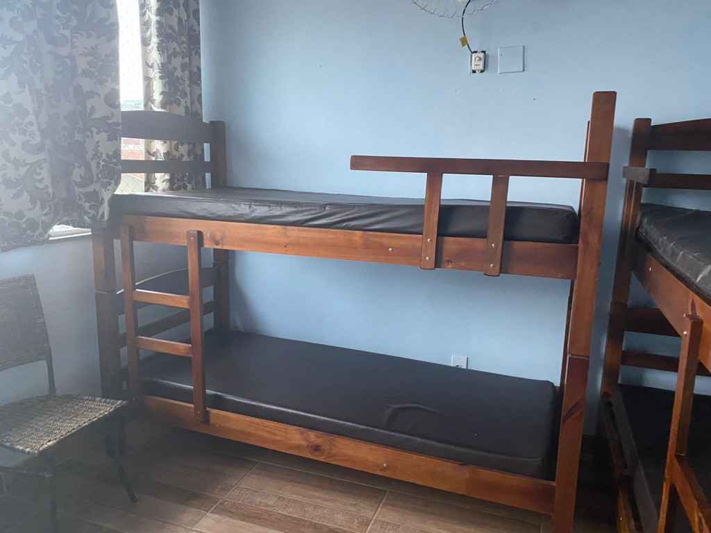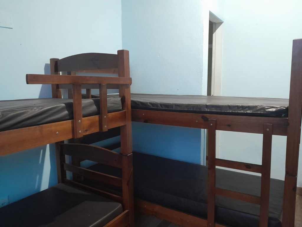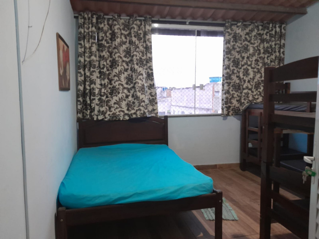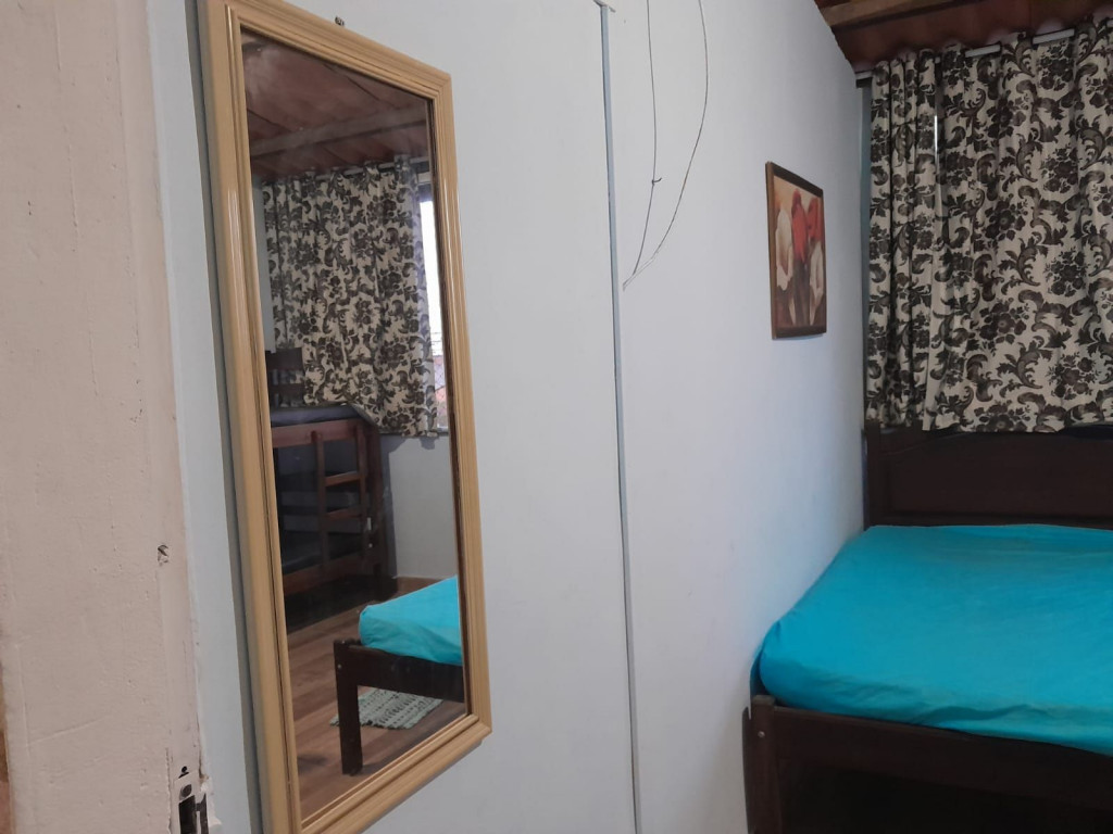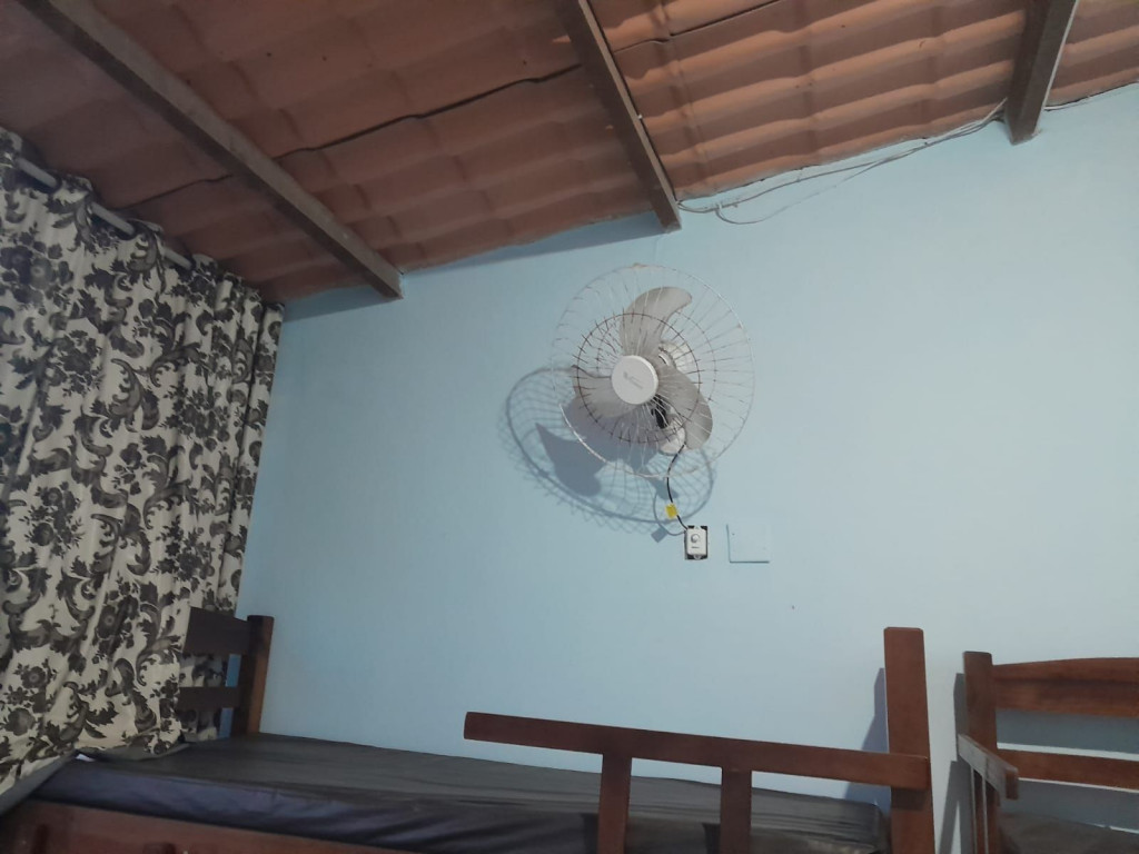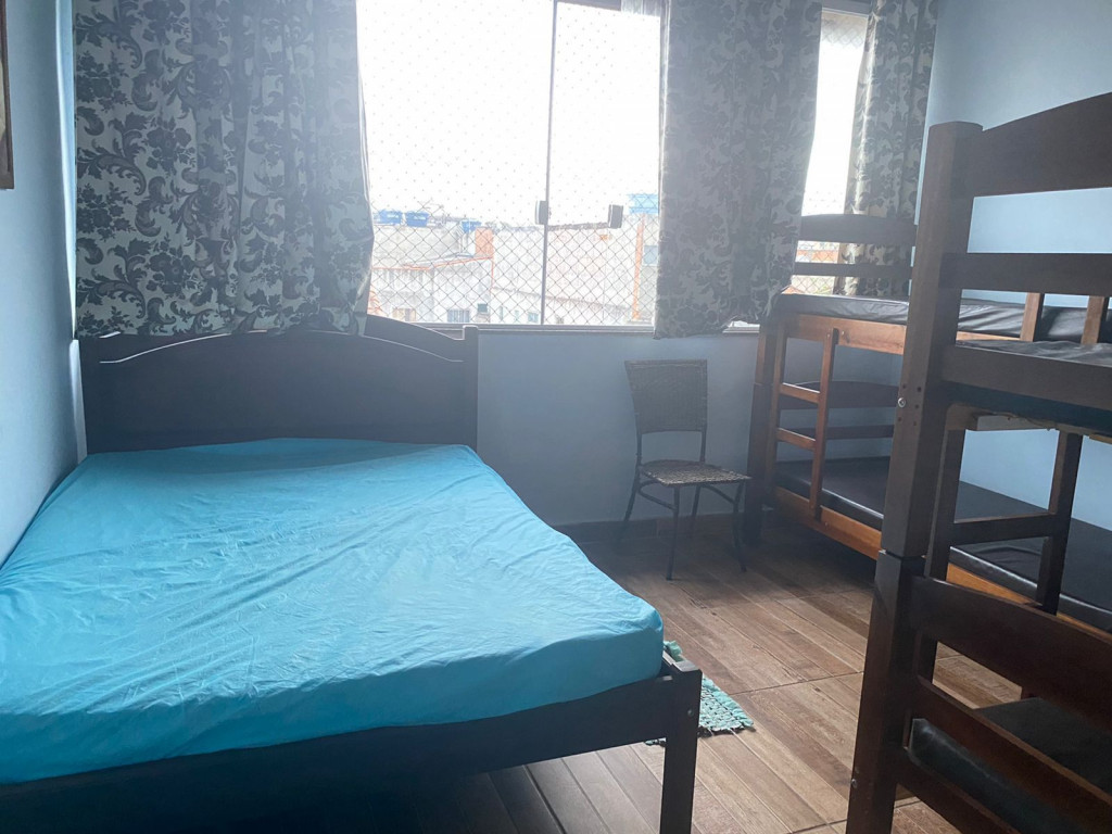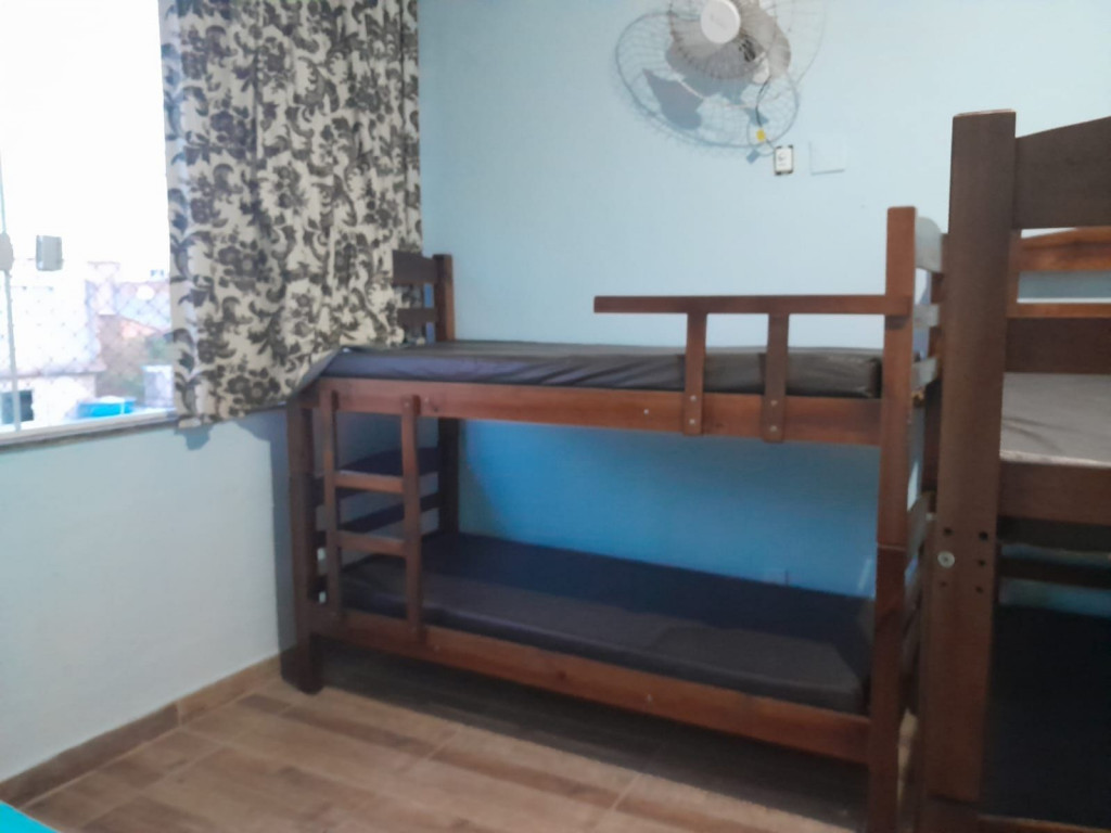 Suíte privativa com quarto e banheiro a 650 metros da Praia do Forte. Cama de casal e duas beliches. Comporta 6 pessoas. Suíte privativa com ventilador, TV e frigobar. Cozinha compartilhada com fogão, forno micro-ondas e utensílios. Fica no terceiro andar, sendo necessário subir escadas. O endereço da hospedagem é: Rua Gustavo Beranger, 102 - Vila Nova – Cabo Frio – RJ. Central, próximo ao comércio. Tem Wi-Fi gratuito. É exigida identificação pessoal e endereço do responsável pela reserva.
