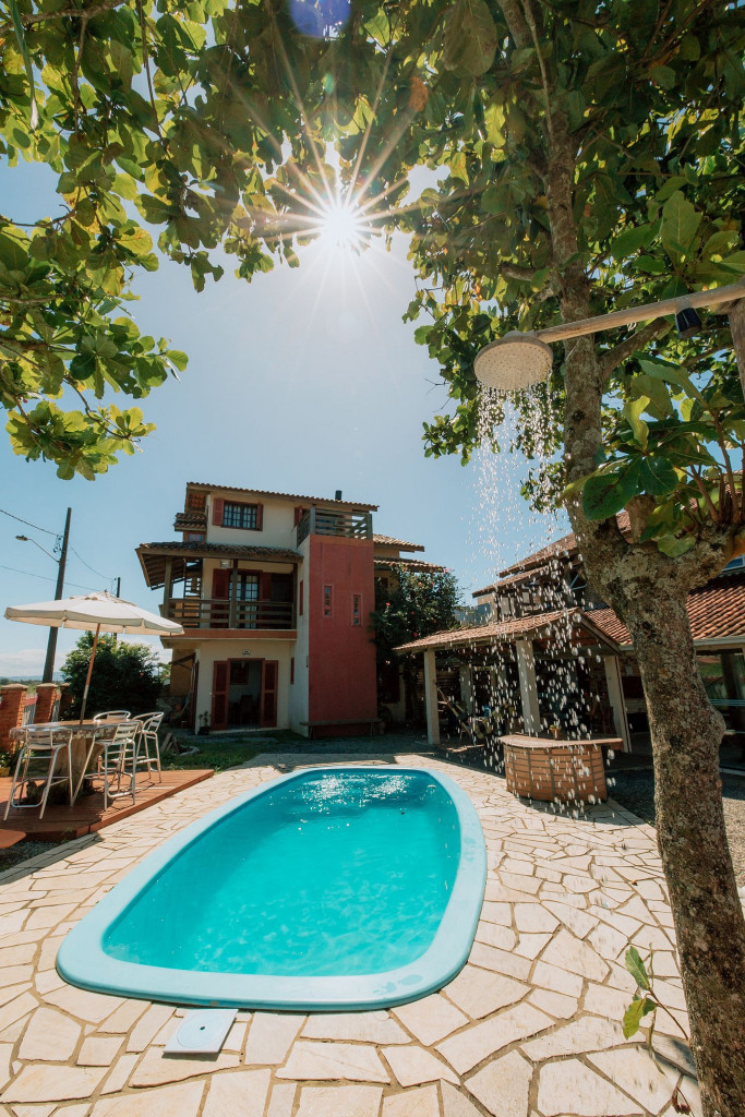 A Casa Aratuca está situada a apenas 200mt da Praia Grande. A casa possui em sua estrutura ampla cozinha coletiva, churrasqueira, piscina, ducha externa, coworking, sala de leitura e jogos, sala de vivências. A região traz conforto e tranquilidade, bem perto da Prainha (10 minutos a pé) e da Enseada (15 minutos a pé), onde tem os maiores agitos com o famoso surf da Prainha, bares, festas, restaurantes e lojinhas.
