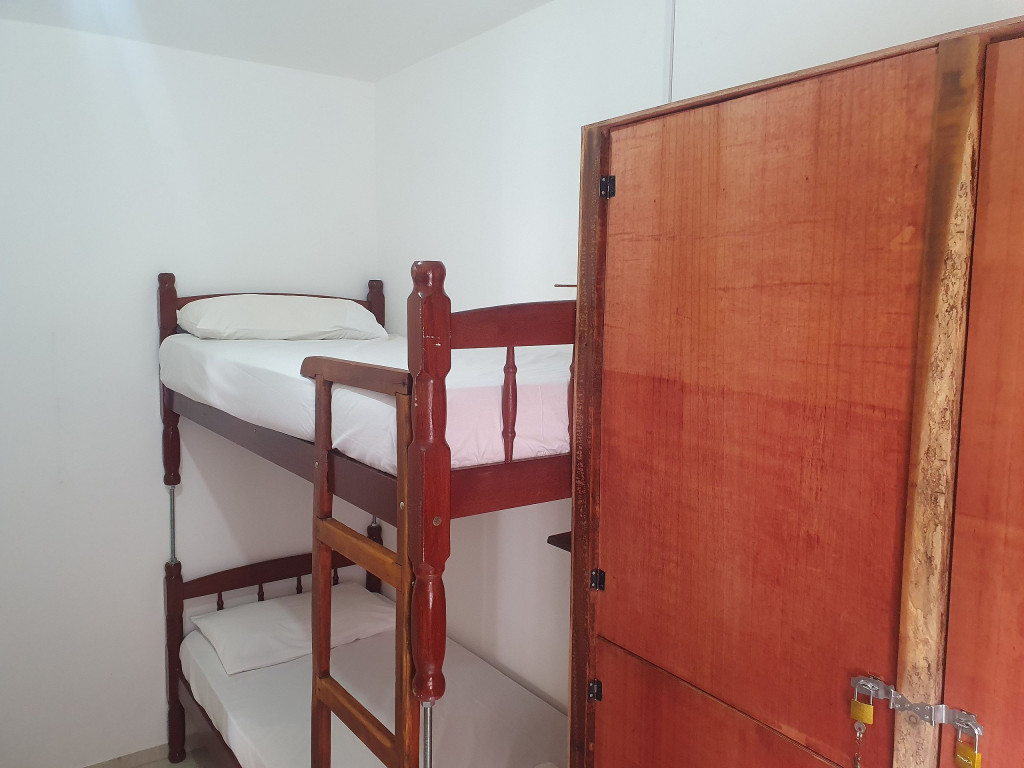 Cama em quarto compartilhado, com ar condicionado e café da manhã. -200 metros da Praia.