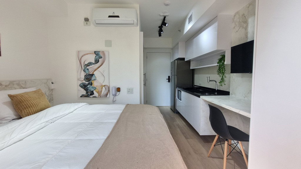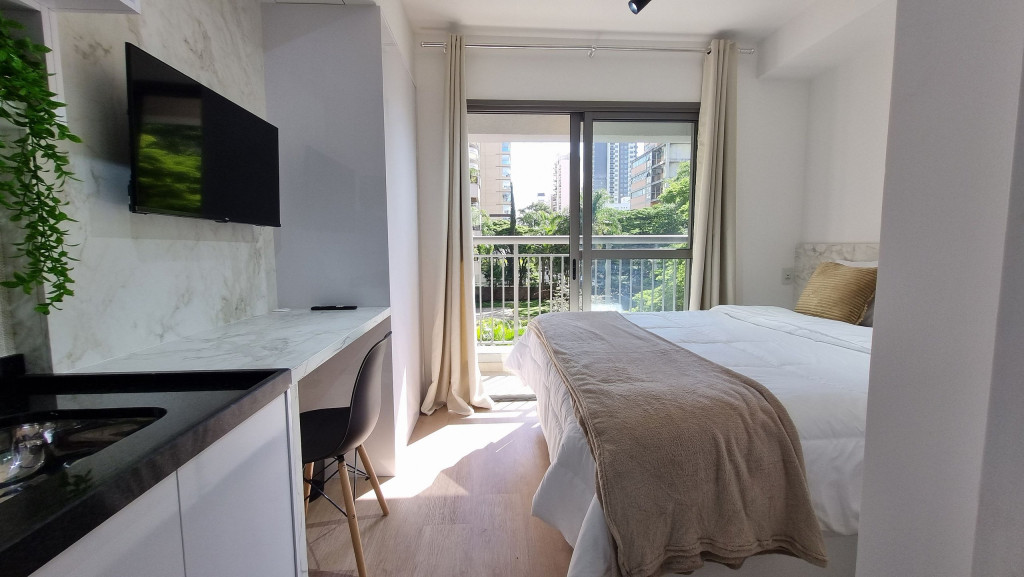 Studio com decoração de alto padrão pensado para curtas ou longas permanências. Perfeito para casais, pessoas viajando sozinhas a lazer/trabalho. Estrutura para até 2 pessoas. Apê a 500 metros da estação Moema do Metrô. Farmácia, padaria, mercados a um passo de distância, além de estar ao lado do Parque Ibirapuera e Parque das Bicicletas.