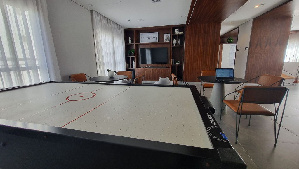 - Sala de business com mesa de Air Hockey