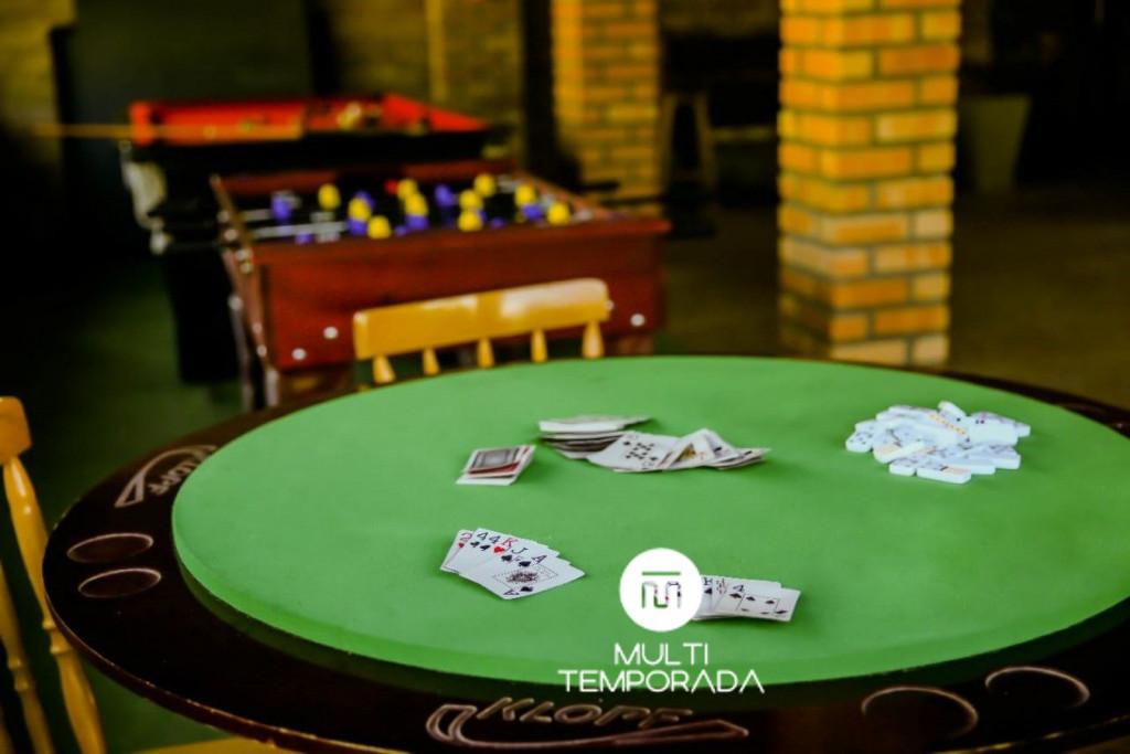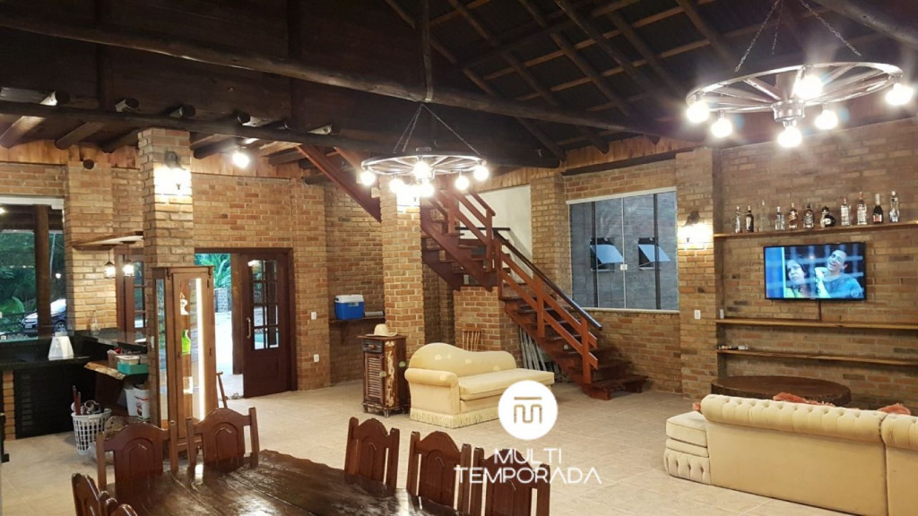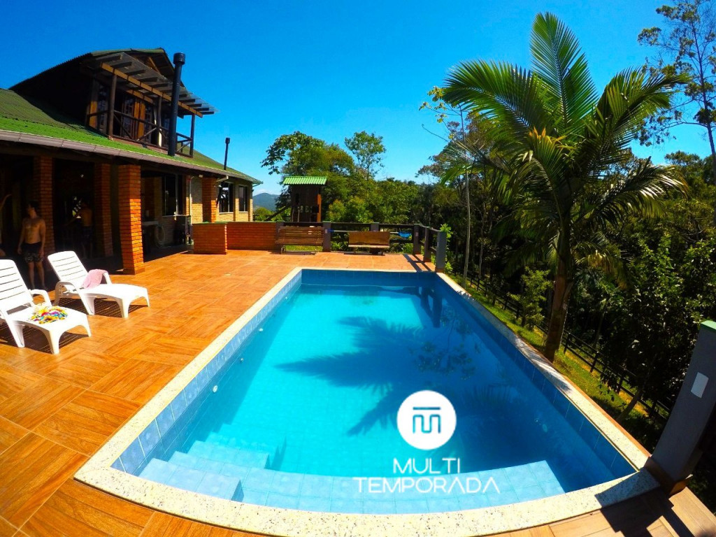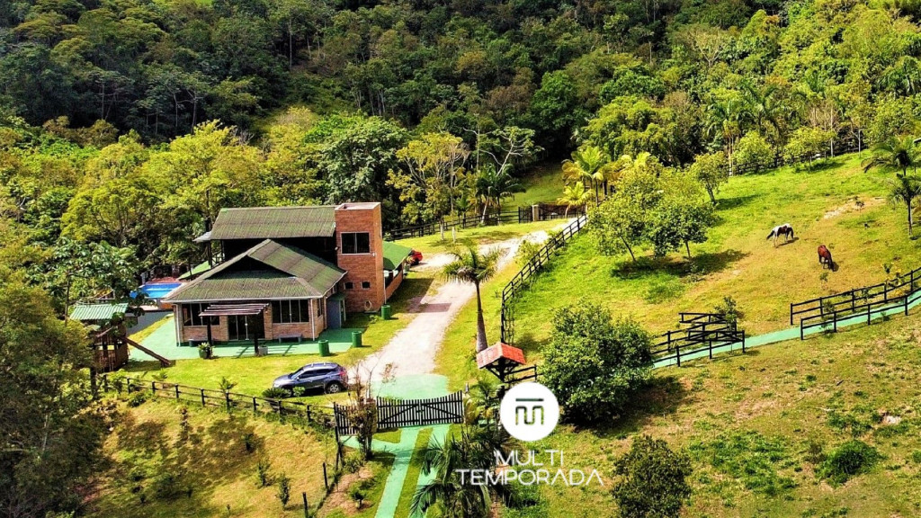 Dormitório 3: 2 Beliches, 2 colchões de solteiro e ventilador de teto;Infraestrutura externa de 50.000m² que dispõem de: estacionamento para 35 carros, açudes para pesca, playground, espaço para caminhada, animais domésticos e silvestres, duas churrasqueiras (uma normal e outra para assar costela inteira), piscina privativa, sala de jogos com sinuca e mesa de baralho e claro, muito contato com a natureza. A parte interna possui 300m² e conta com: cozinha completa com fogão à gás, fogão à lenha, micro-ondas, 2 cervejeiras, espaço gourmet coberto com churrasqueira e eletrodomésticos de primeira linha, com o máximo de qualidade para os nossos hóspedes. Além disso, possui sala de estar com TV Smart 42’’ e internet WI-FI de qualidade (com cabo). Tudo isso para um melhor conforto dos nossos hóspedes, para que se sintam em casa, em um perfeito refúgio para descansar, se divertir e desvendar o que há de melhor na Serra Catarinense.Observações e Informações Sobre a Região:- Espaço destinado ao turismo de temporada. Contamos com amplo espaço junto à mata atlântica e a serra do tabuleiro em um dos principais pontos turísticos de Santo Amaro da Imperatriz, o Morro Queimado, muito utilizado para o ecoturismo, esportes radicais, voo livre, caminhadas, mountain bike e observação da natureza, sendo que do seu topo se tem uma bela vista da capital, Florianópolis.- Estamos a 2km da Praça de Santo Amaro da Imperatriz. 5min de carro de supermercados, farmácias, hospital, restaurantes e comércio em geral. Por fim, estamos a 3km do topo do morro queimado;