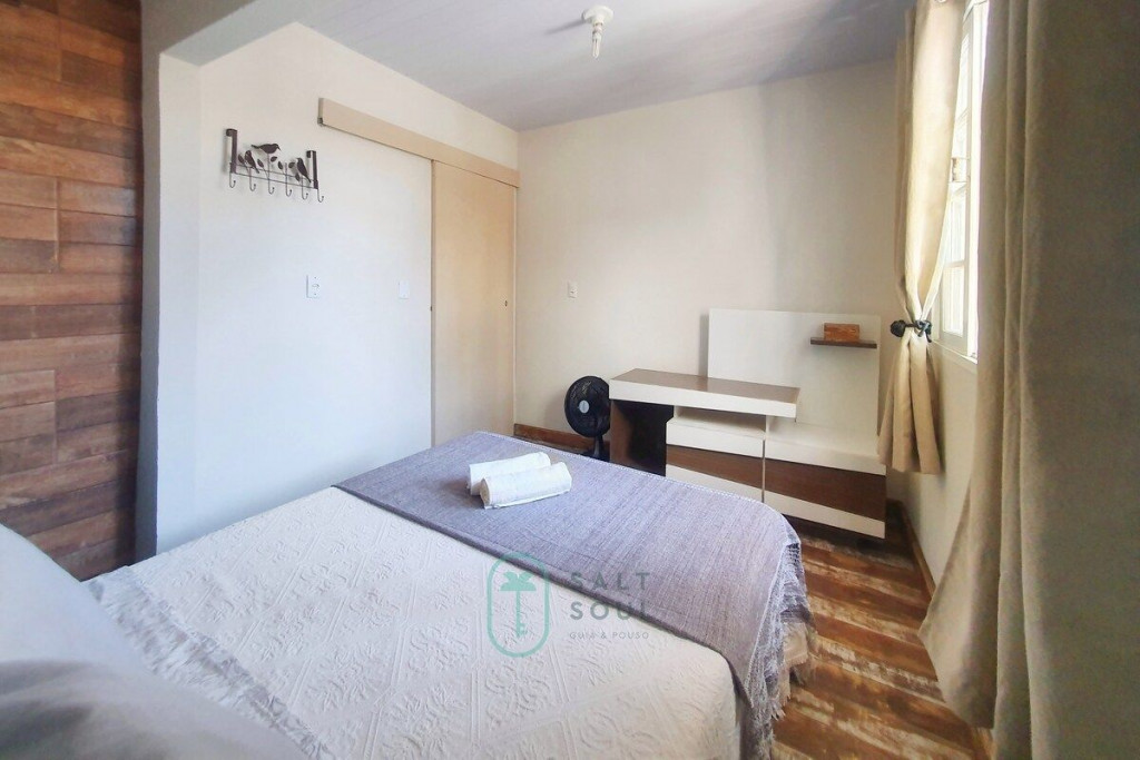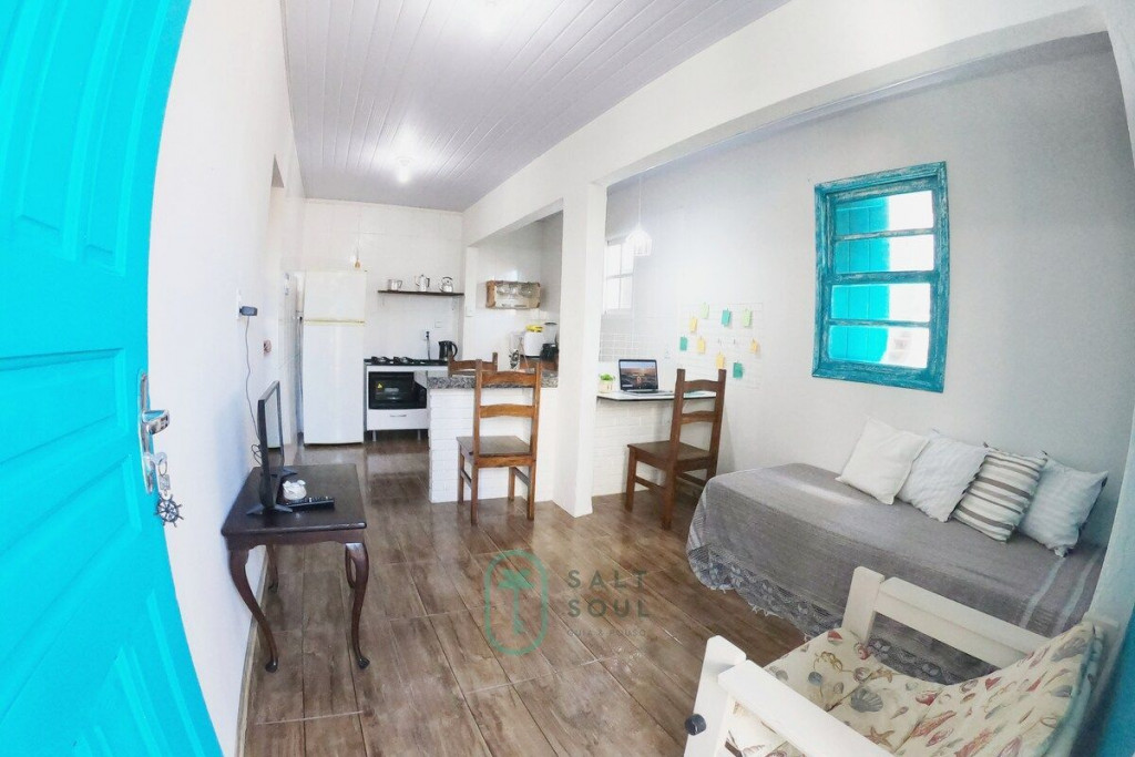 Ambiente familiar seguro na beira da praia, no coração da Barra. Organizado e preparado exclusivamente para teu grupo. Independe, a parte térrea tem 2 quartos, 1 banheiro, sala com estação de estudos, cozinha (louças, panelas, liquidificador, sanduicheira, chaleira elétrica); tanque e pequena área na frente e anexo ao quarto 2.