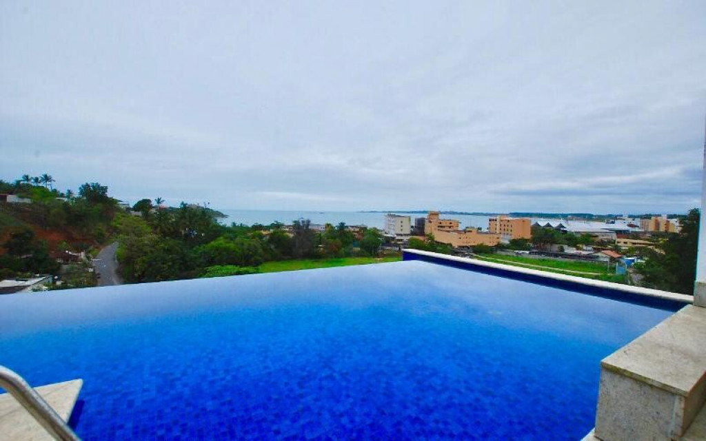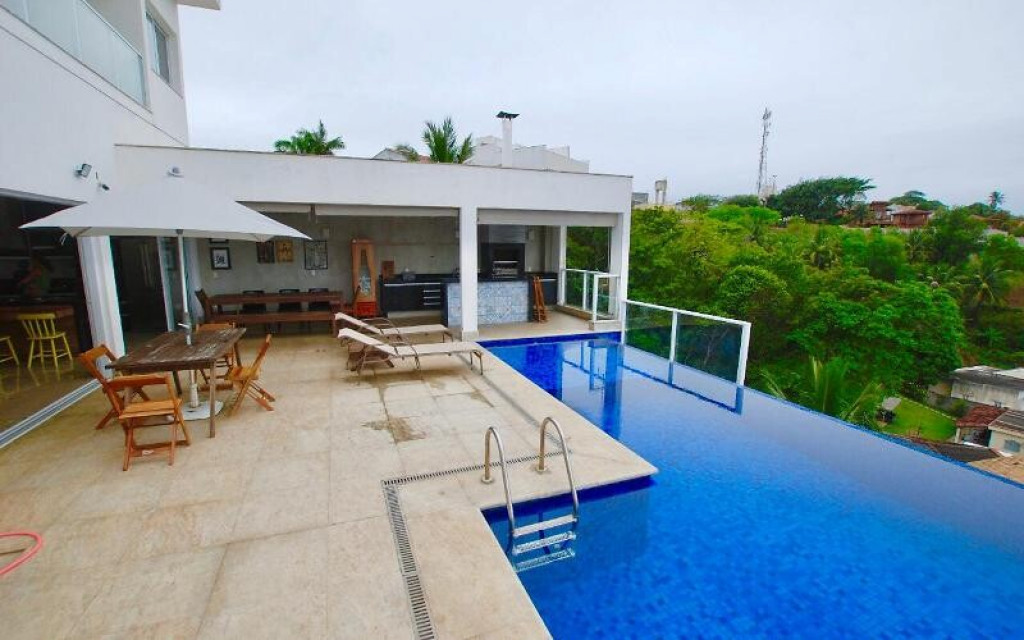 Localizada em Meaipe vista do mar com 4 suítes privativas com ar (roupa de cama e toalha) 1 lavabo na área externa e mais 1 na área interna, piscina com borda infinita, churrasqueira e cervejeira na área externa, salão dois ambientes, cozinha americana com micro-ondas, forno, cooktop, geladeira e maquina de lavar louça, área de serviço com máquina de lavar e garagem para ate 4 carros.