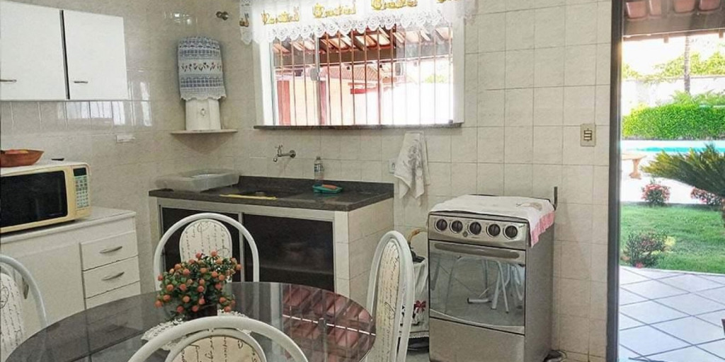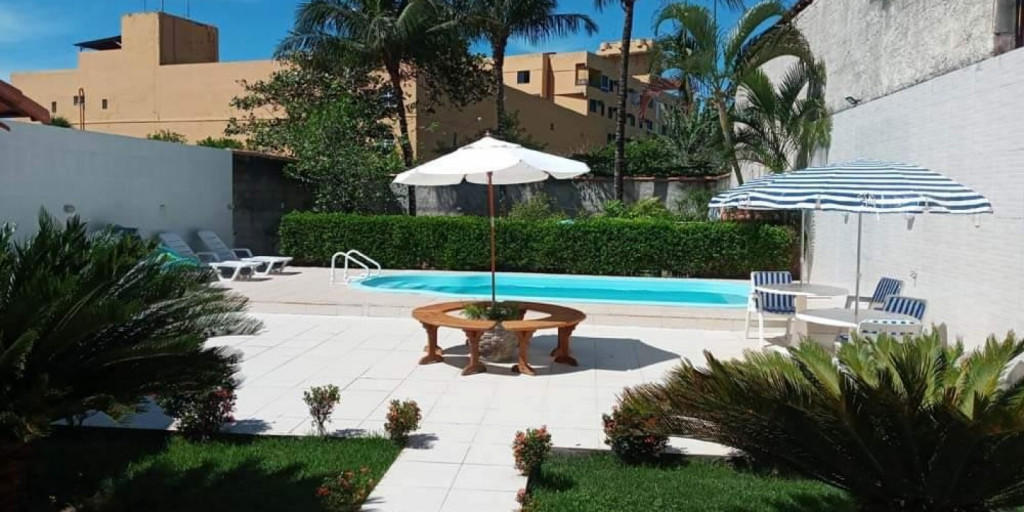 1 quadra do mar, piscina, 2 jardins, área de churrasco, ventiladores de teto, varandão, garagem