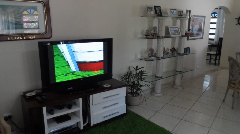 A casa possui 3 suites com ar condicionado e duas com tvs.