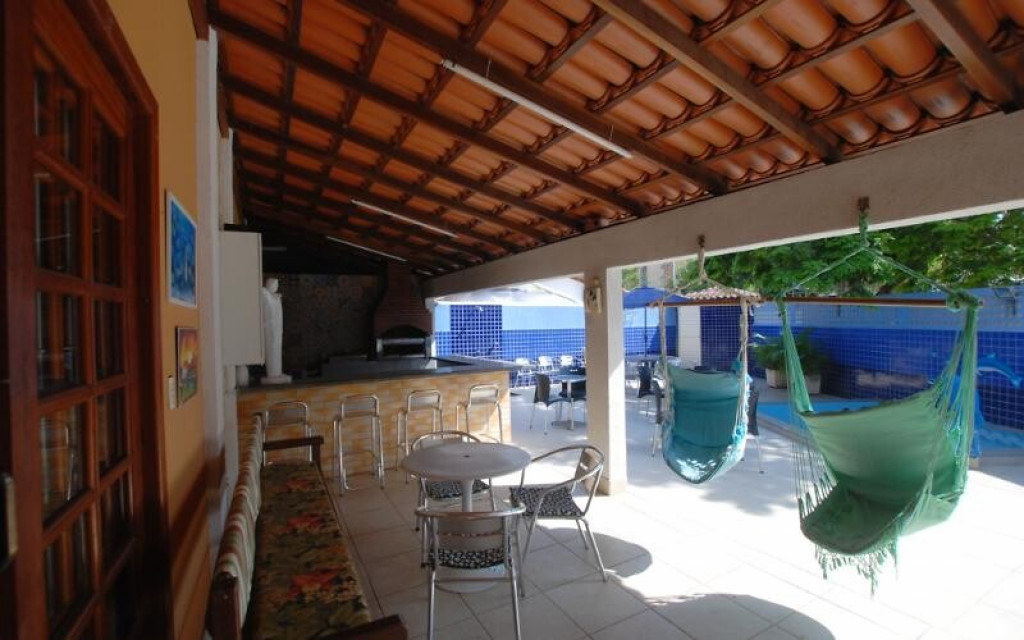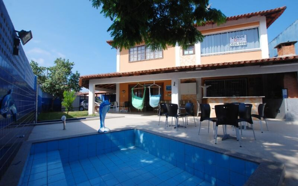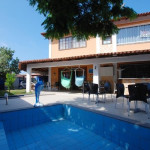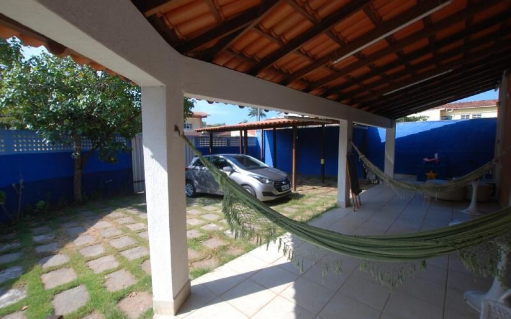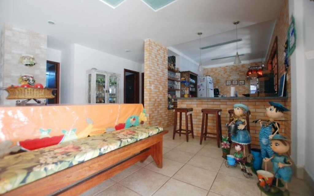 Casa com 6 quartos sendo 2 suítes, ar condicionado em 4 quartos, restante com ventilador de teto, mais dois banheiros internos e um externo, cozinha completa, duas salas, varandão ao redor da casa, piscina de criança, churrasqueira e garagem para 7 carros.