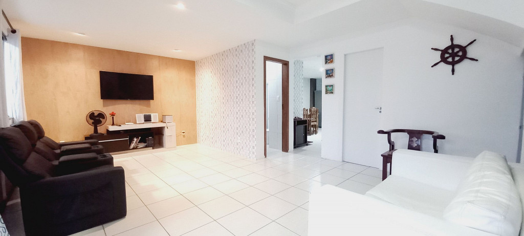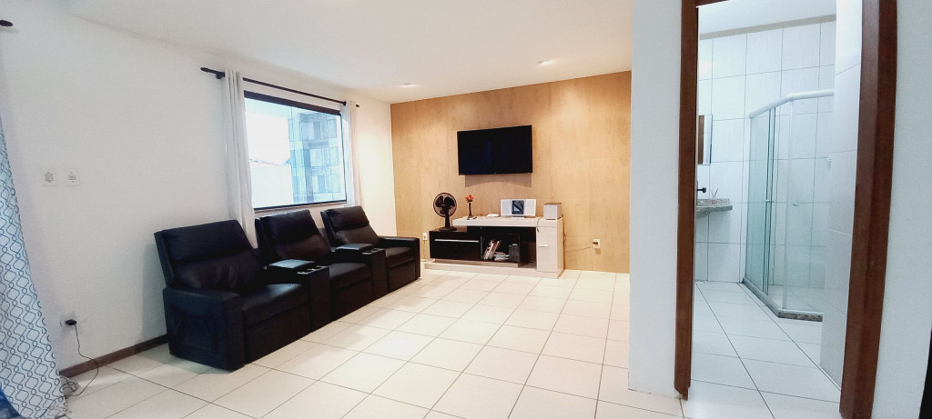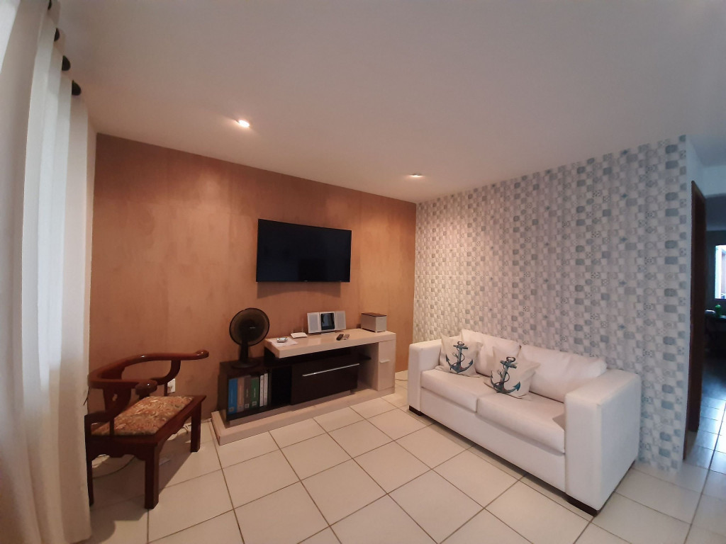 Fizemos da casa um ambiente ventilado, claro e agradável, com portas e janelas de vidro e cortinas para garantir a sua privacidade. A casa é virada para o nascer do sol: No piso superior estão 2 suítes com ar condicionado, 2 varandas e o escritório. No inferior, 1 quarto, sala de estar/ TV com Smart TV 50" e poltronas reclináveis (estilo cinema), banheiro, varanda, sala de jantar e cozinha muito espaçosos, área de serviço e quintal.