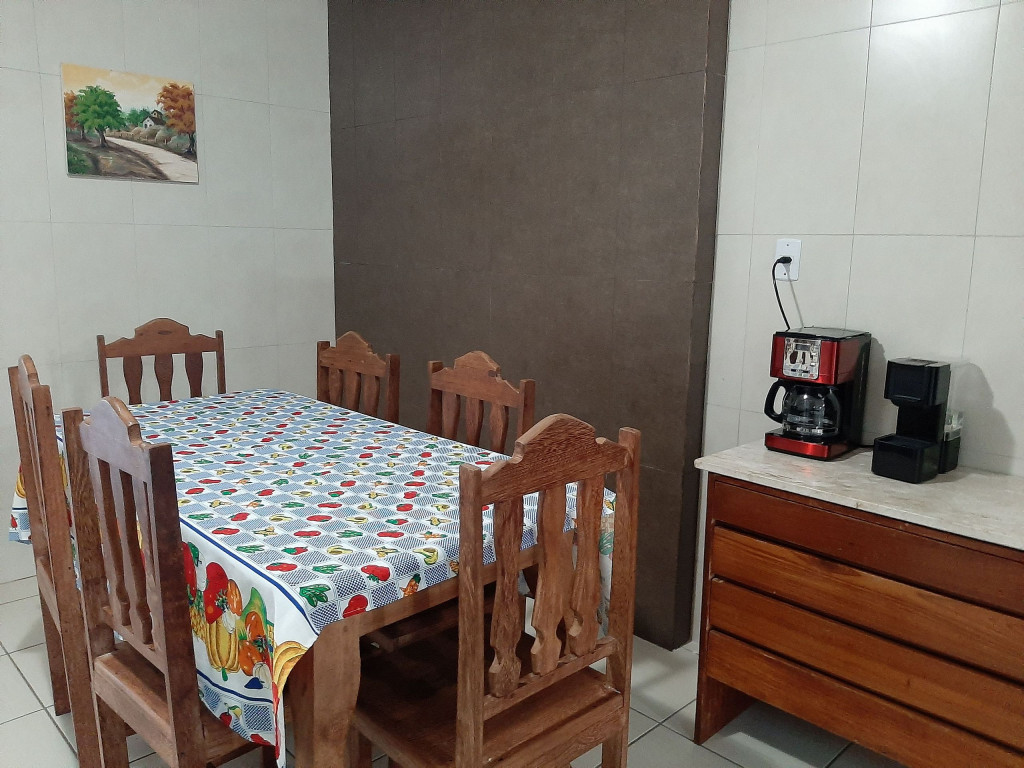 Há ganchos na varanda frontal superior para colocação de até 2 redes de descanso no local mais ventilado da casa. Na cozinha, encontrará filtro de água, louças, talheres, panelas, potes, frigideiras e utensílios variados, para o caso de preferir preparar as suas refeições.