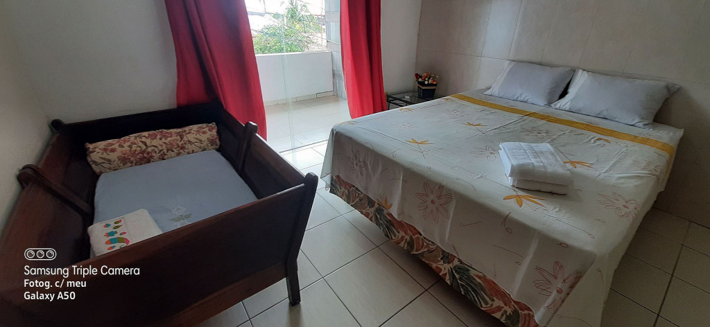 Ar condicionado disponível apenas nas suítes, no segundo andar. Em todos os quartos há opção de ventilador de teto.