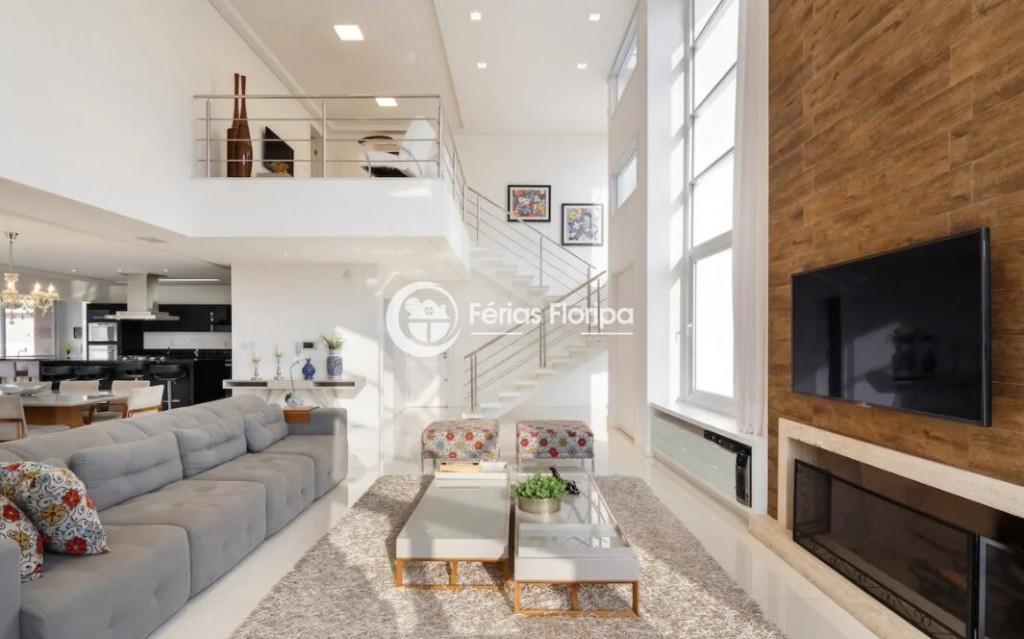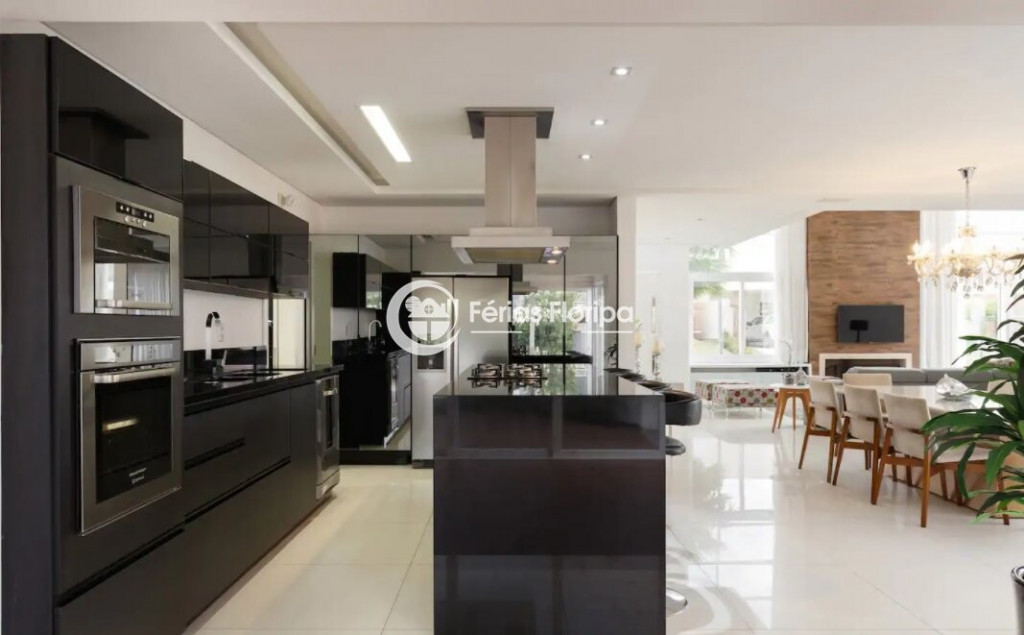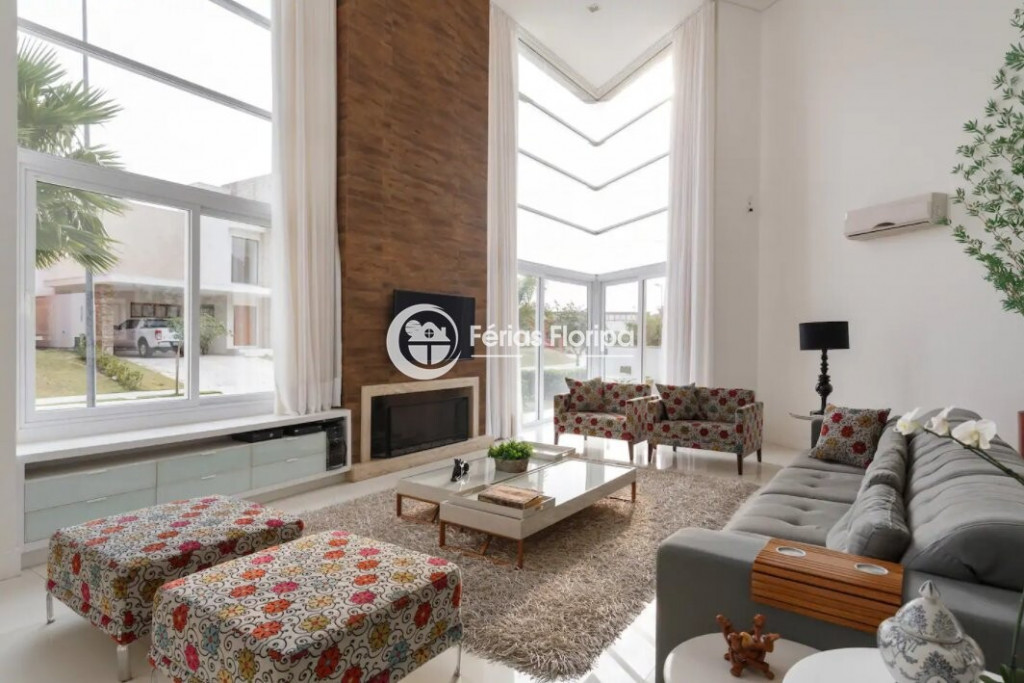 - Casa com 4 dormitórios com ar condicionado; 4 banheiros( 2 suíte ) + 1 lavabo; Garagem para 2 carros; Churrasqueira com área gourmet; Hidromassagem; Jacuzzi; Piscina; TV a cabo; Internet wi-fi; Lareira interna; Condomínio fechado.