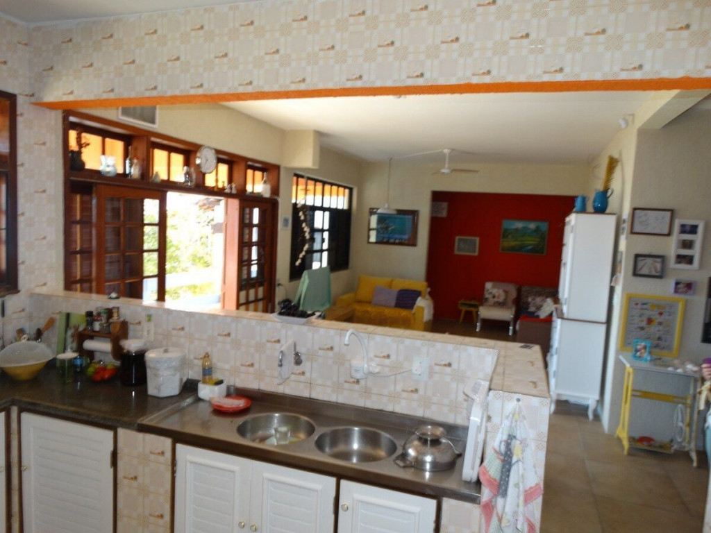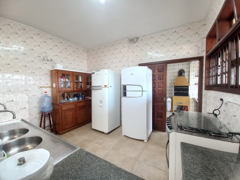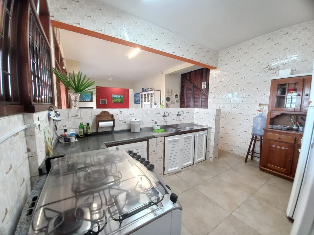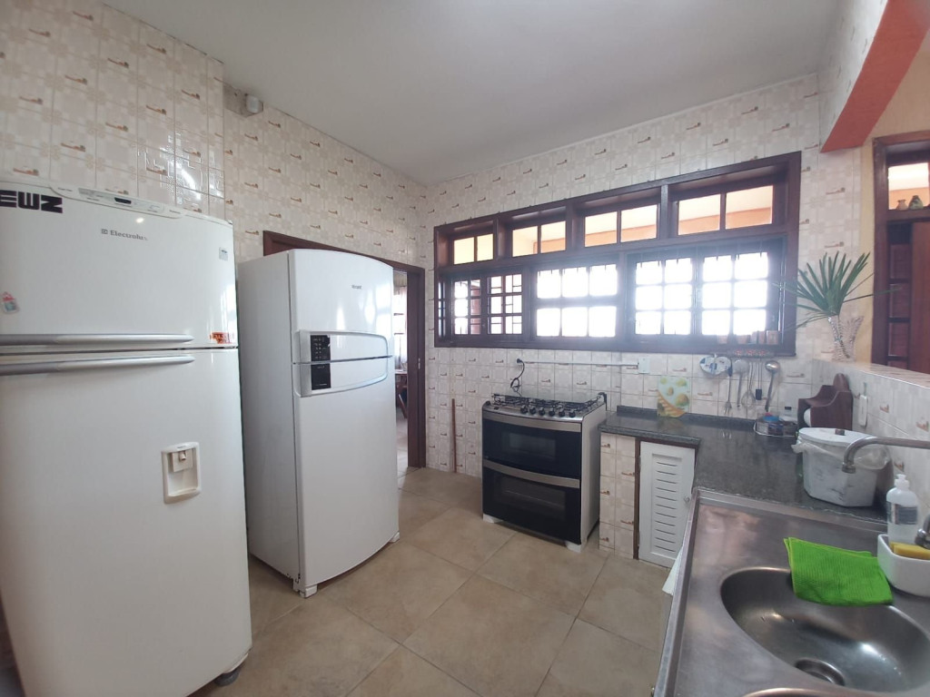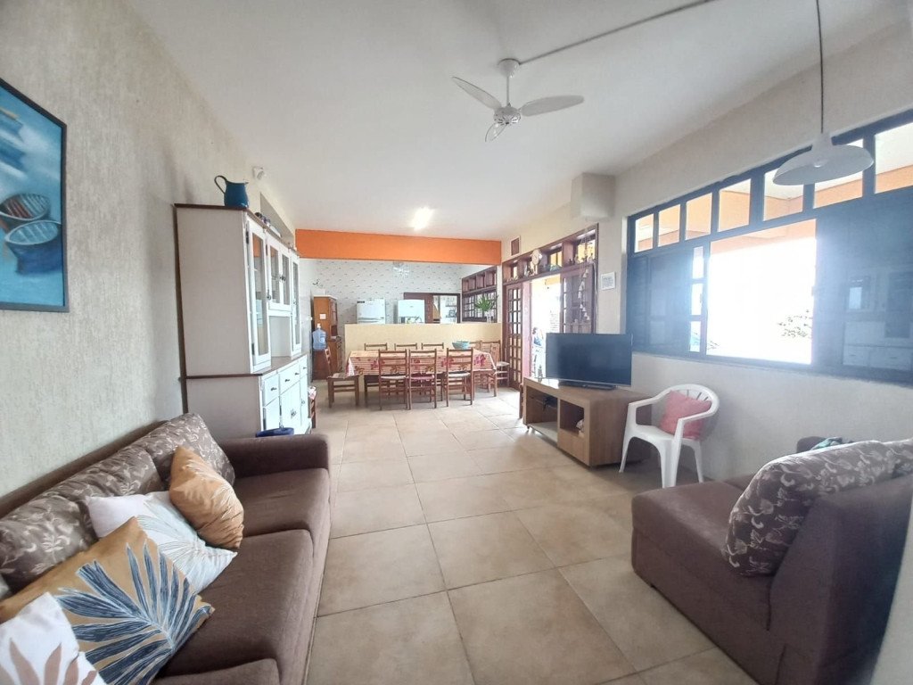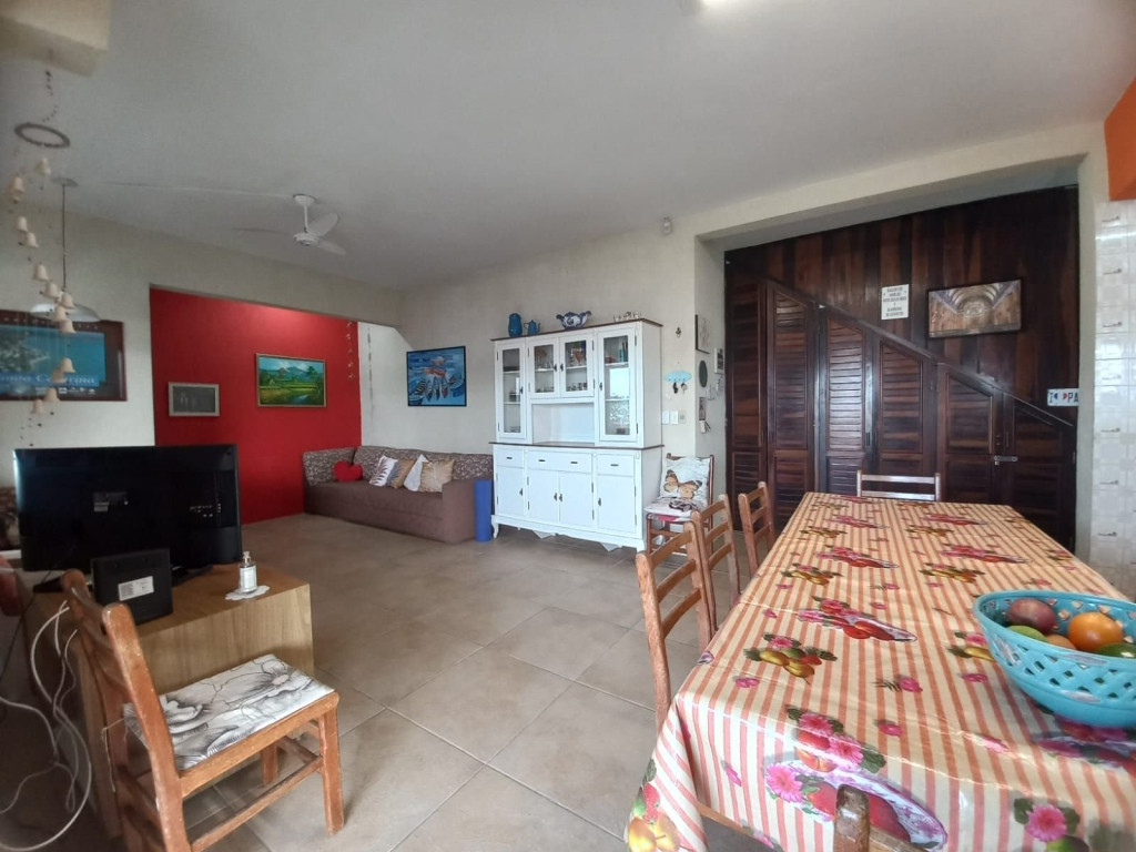 Excelente imóvel de 5 dormitórios todos com ar condicionado e roupa de cama, 5 camas de casal, 3 beliches, 1 colchão de solteiro, 3 banheiros, toalhas, secador de cabelo, ferro de passar roupas, sala grande, cozinha com geladeira, fogão, micro-ondas, liquidificador, sanduicheira, Espremedor de frutas, 2 Varanda grande, vista para o mar, área de serviço, maquina de lavar roupas, tanque, churrasqueira.