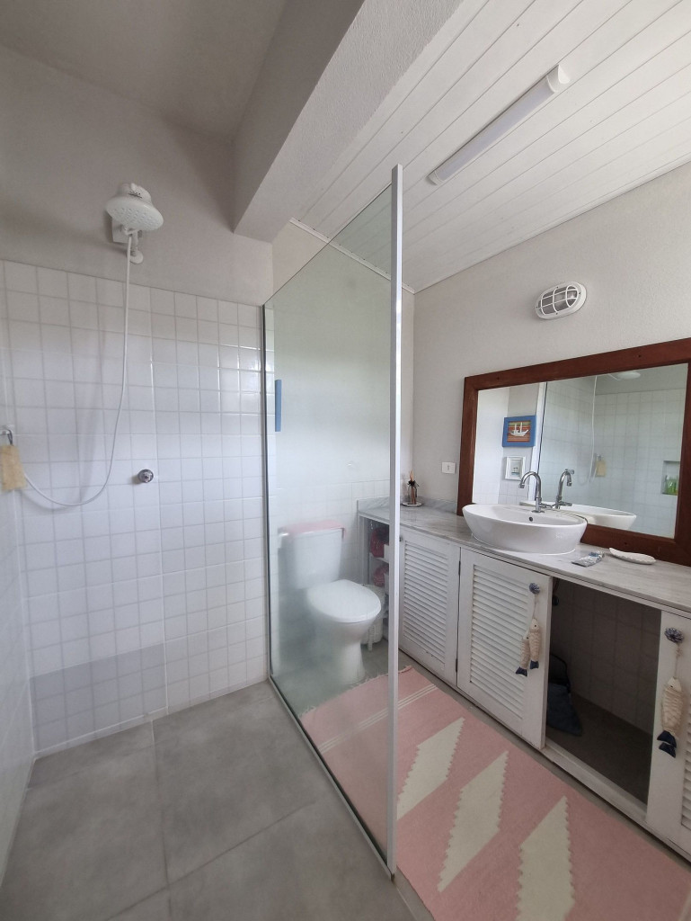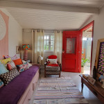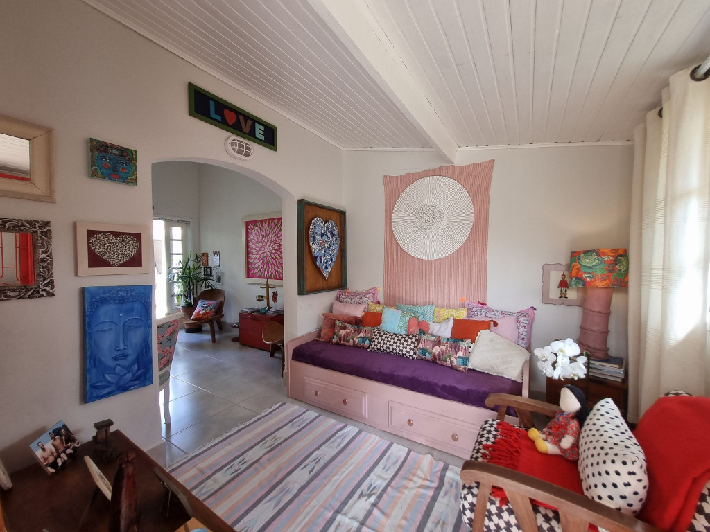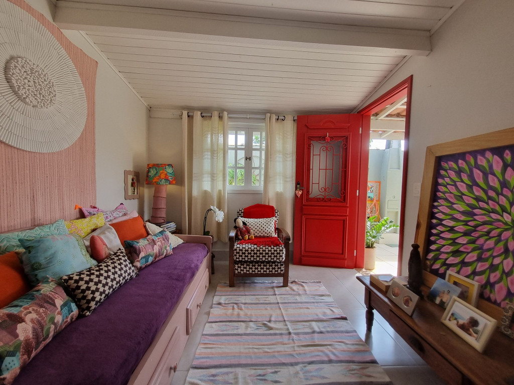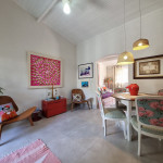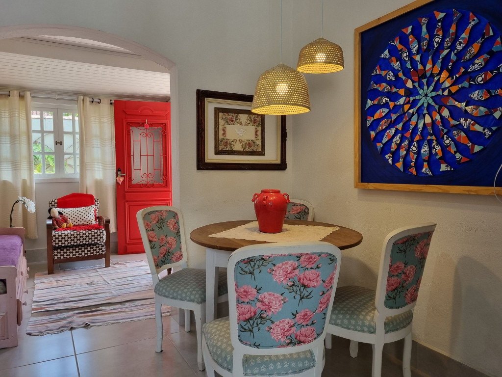 Logo ao entrar na casa, os hóspedes encontrarão um ambiente bem iluminado e arejado. Neste primeiro espaço, há uma sala de estar com sofá-cama e ao lado uma sala de jantar e espaço para leitura