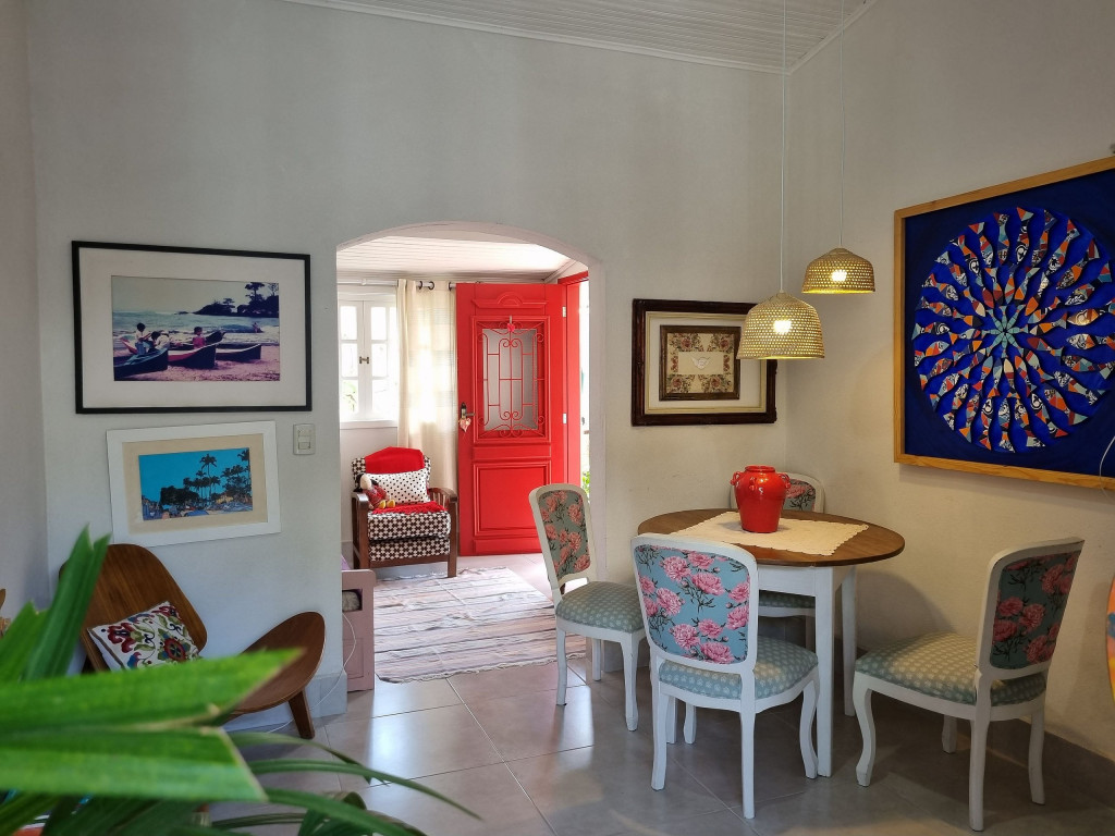 Localizada a 300m da praia de Perequê, nossa casa de 130m2 acomoda confortavelmente até 3 pessoas em 1 suíte e 1 sofá-cama. A casa abriga diversas obras de arte da famosa artista plástica e mosaísta Ana Canale, que servem como um museu inspirador. Também estamos próximos de restaurantes e supermercados e a 8 min de carro até a Vila, sendo um local estratégico para passeios.