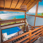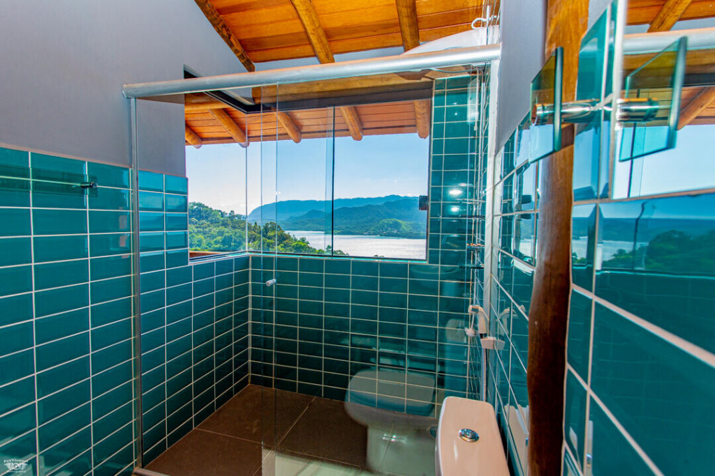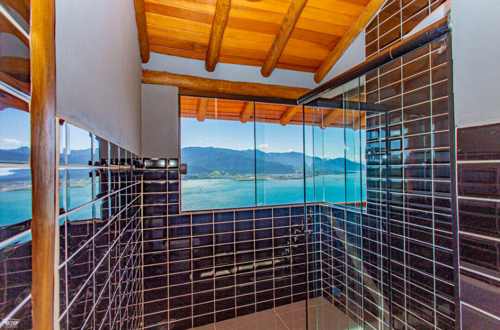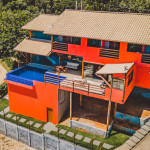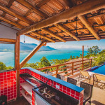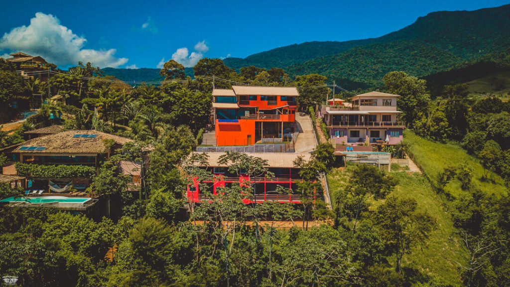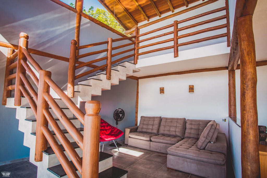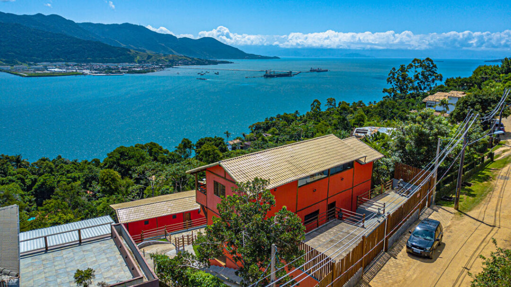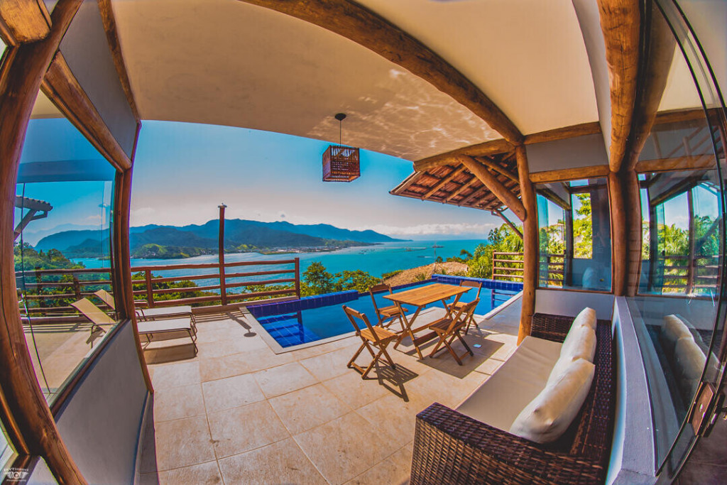 No andar de baixo estão a sala, cozinha totalmente equipada, piscina com borda infinita e churrasqueira. Os hóspedes da casa ainda têm estacionamento privativo e Wi-Fi de 40 Mbps.