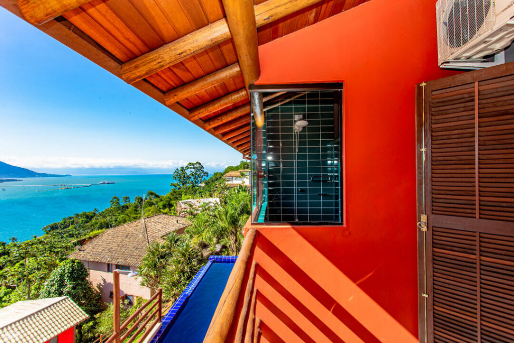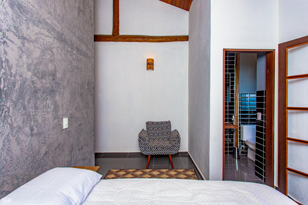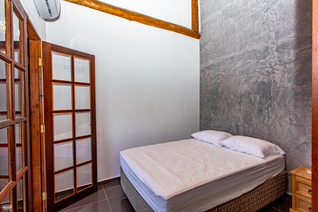 A Casa Almirante tem 4 suítes com cama de casal e ar condicionado e dois dos quartos ainda contam com um sofá cama de solteiro, totalizando a capacidade de 10 pessoas.