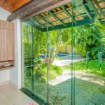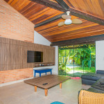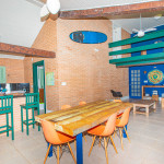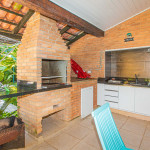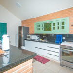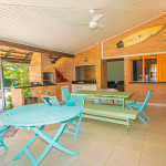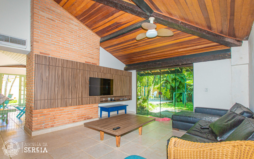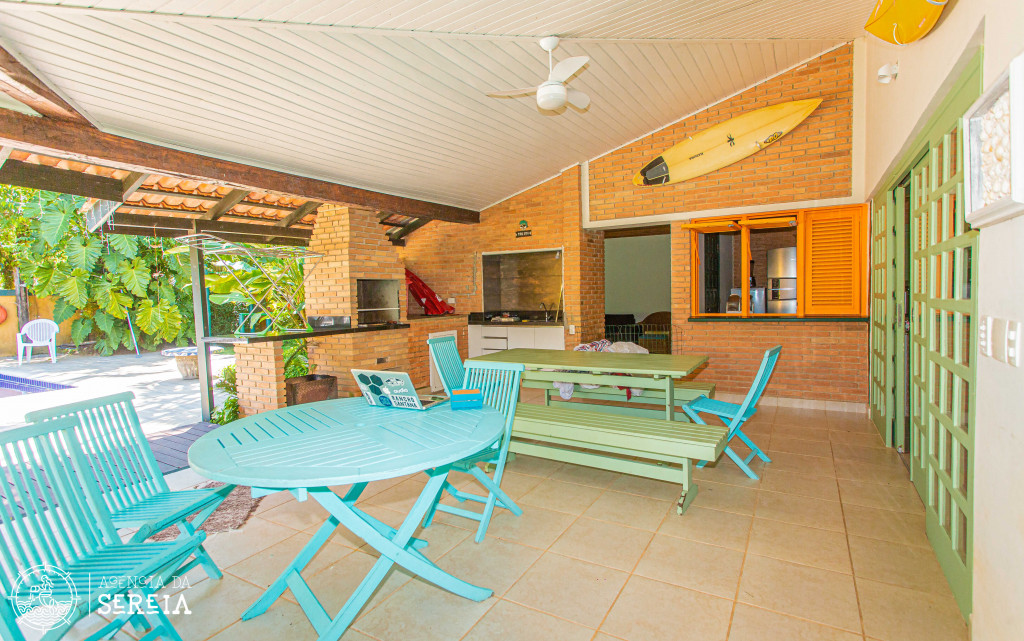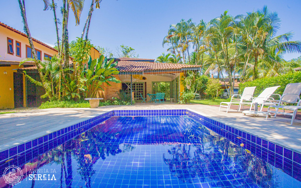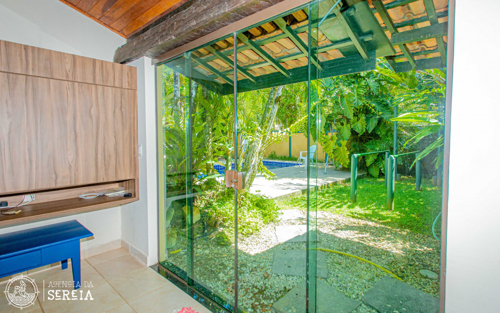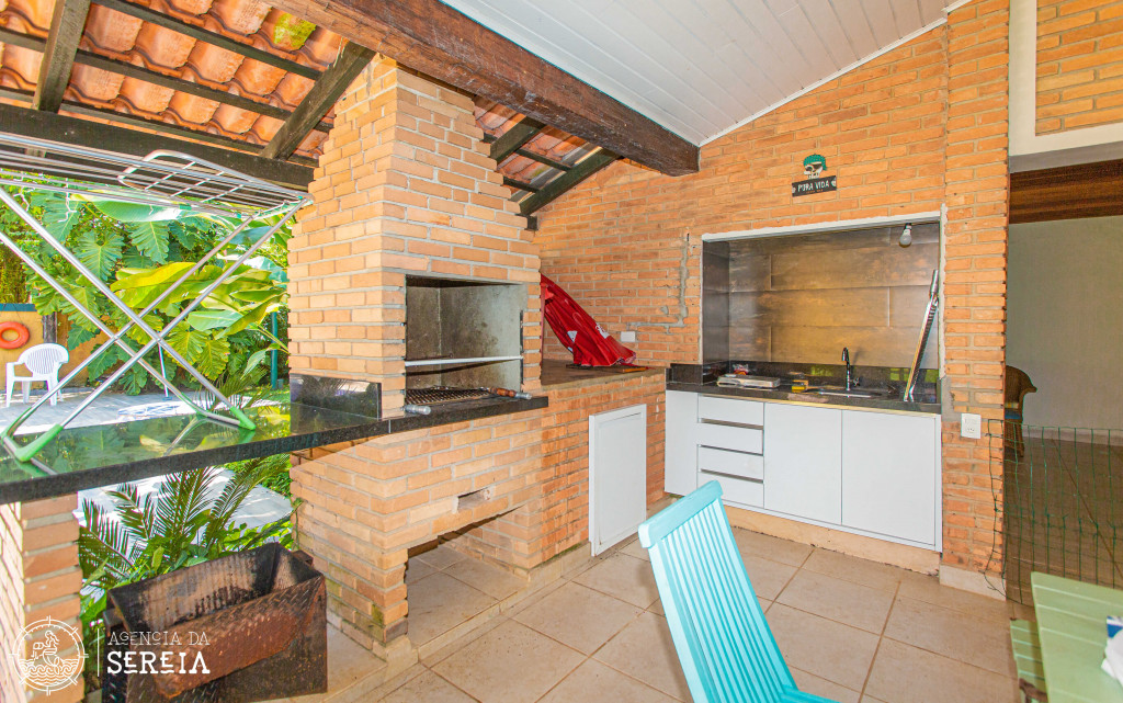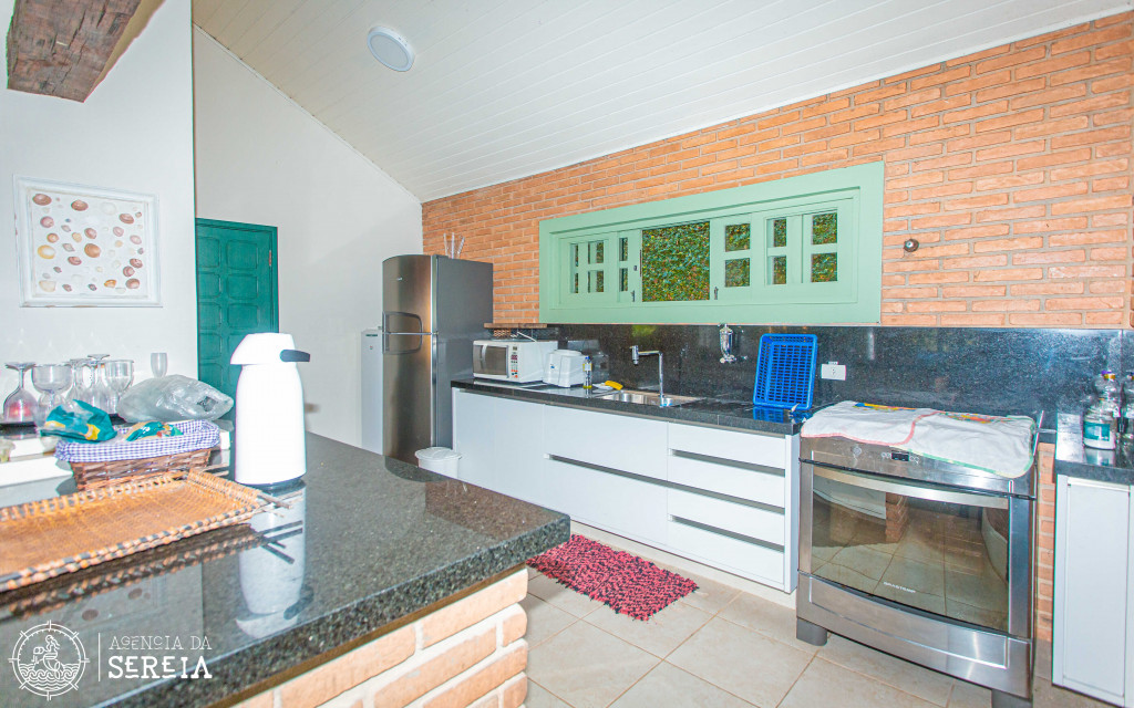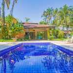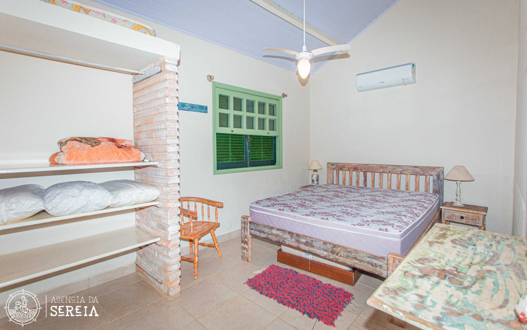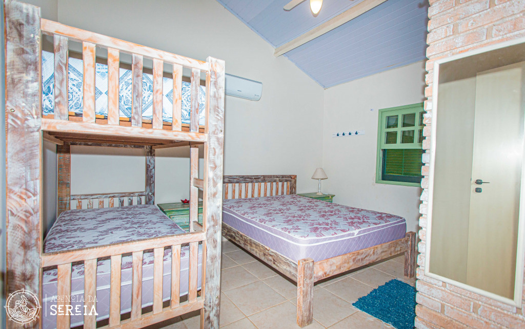 Possui 4 suítes com ar-condicionado, amplo espaço externo e interno, com piscina, churrasqueira e um belo jardim, além de cozinha completa integrada com a área da churrasqueira. Três das suítes possuem cama de casal, e uma possui uma cama de casal e uma beliche de solteiro. Na parte externa, ainda tem mais 2 suítes separadas com camas de casal e ar-condicionado.