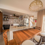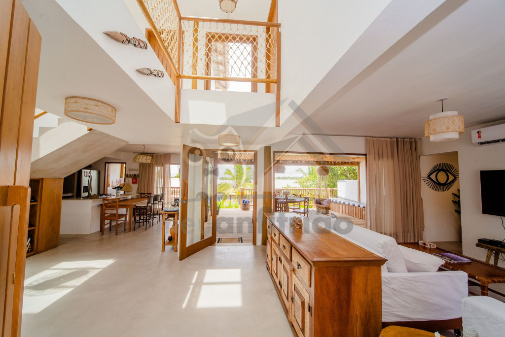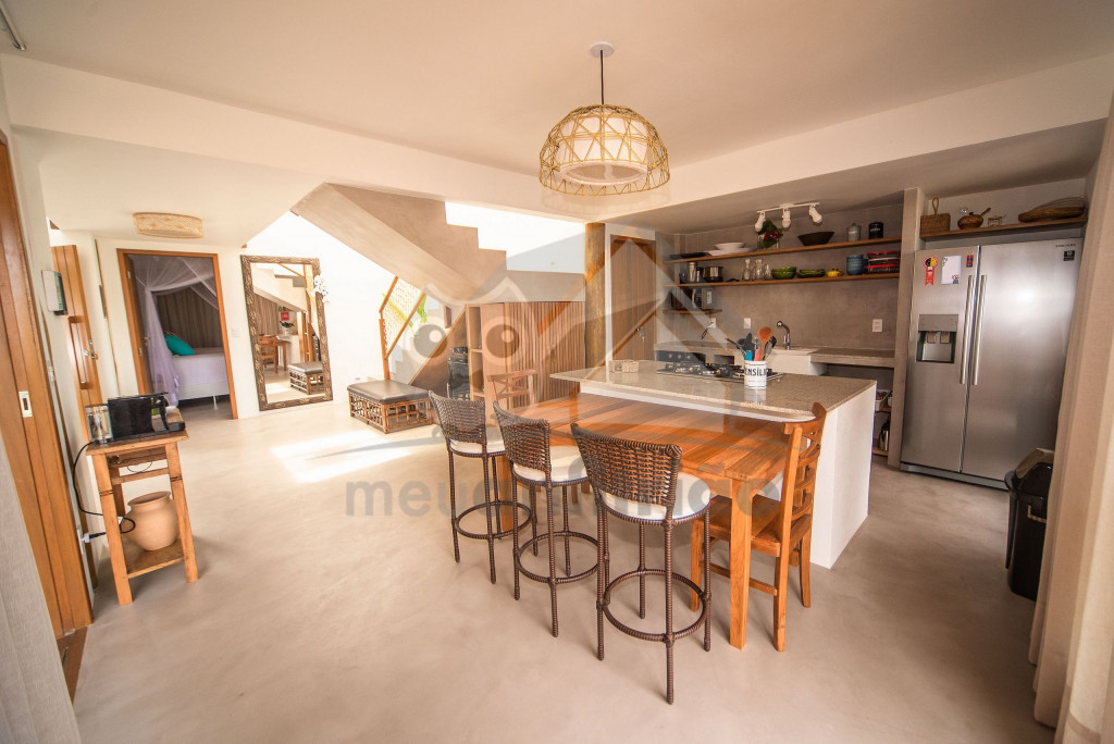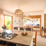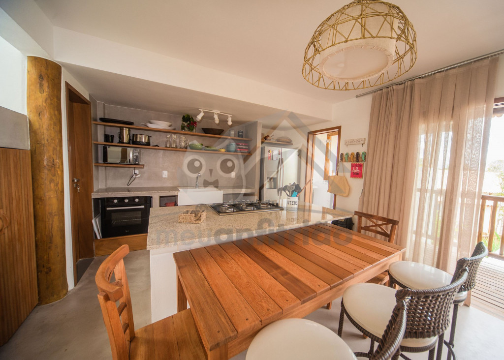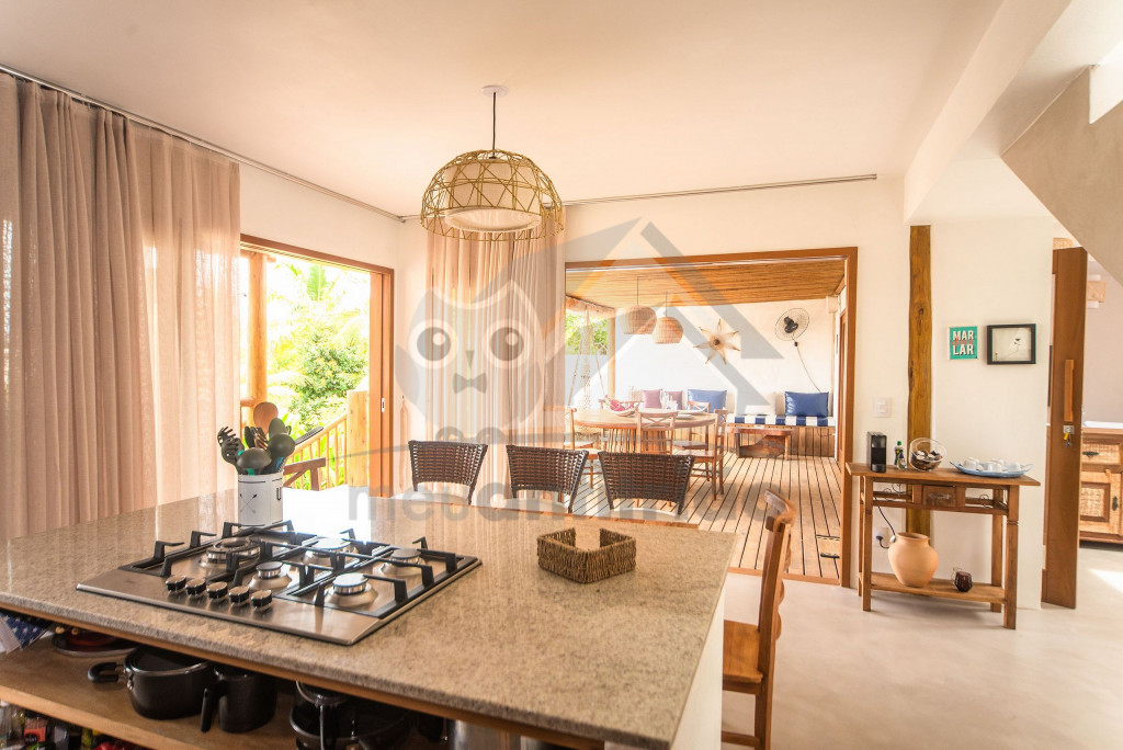 Logo ao entrar na casa, nossos hóspedes encontrão uma sala com sofás, TV Smart com Sky e ar-condicionado. O espaço é integrado à uma cozinha completa com todos os utensílios necessários para a estadia, além de máquina de fazer gelo, adega, cafeteira nespresso, mesa e balcão para refeições.