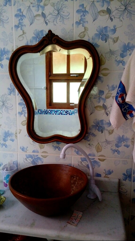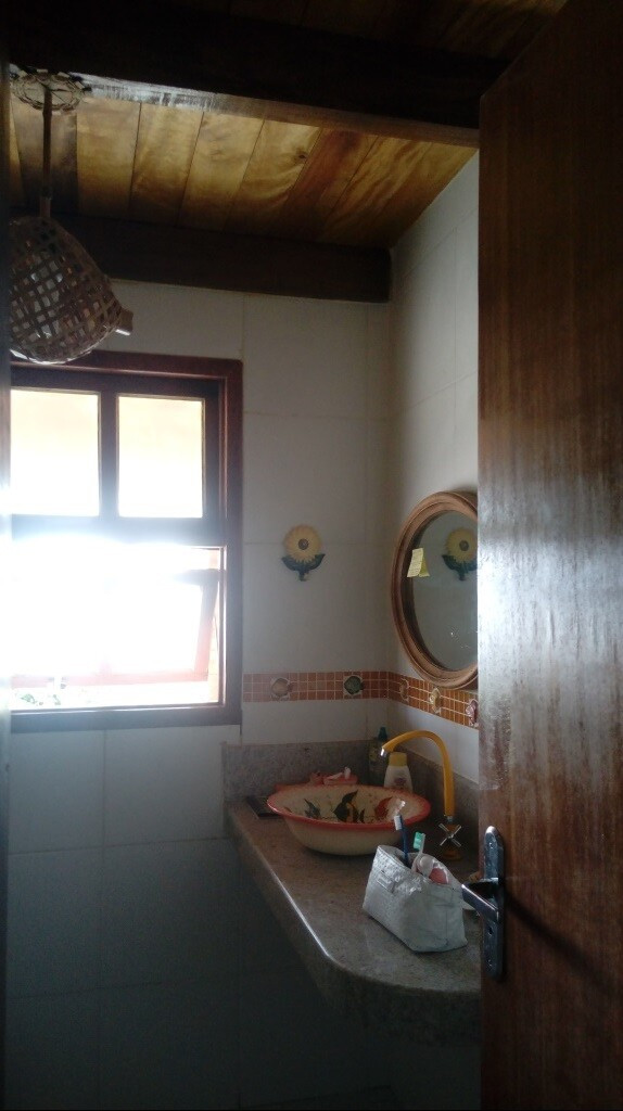 Uma casa tipo chácara, com amplo jardim e pomar com frutas exóticas, além de coqueiros, mangueira e graviola.