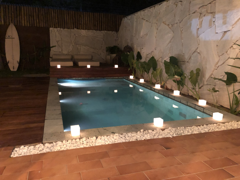 A Casa Bali fica em um condomínio fechado de apenas 10 casas. Com duas vagas de garagem por casa. Os carros devem ficar com o crachá dentro do veiculo enquanto se permanecerem no estacionamento. O condomínio é no meio a mata, super arborizado e super familiar. Motivo pelo qual somos rígidos com a Lei do silencio após as 22hs. Não sendo permitido musicas ou eventos na área externa da casa a fim de evitarmos incomodar os vizinhos da casa ao lado. Isso acarreta em multas ao proprietário e consequentemente poderá ser repassado isso ao locatário. Por ser ao lado de uma reserva legal (mata) possui muitos mosquitos!!! Levem repelente pois em épocas muito quentes, eles aparecem bastante. O condomínio fica próximo de uma belíssima praia! Você se sentirá em casa, pois nosso espaço é aconchegante com camas e roupas de cama novas e confortáveis. Os quartos contam com ar condicionado e ventilador de teto. O pé direito é alto e a casa bem arejada. A cozinha é toda equipada com micro-ondas, cooktop e forno Brastemp Gourmand, geladeira de porta dupla, sendo uma delas o freezer. Na nossa sala, temos uma cadeira de balanço bem charmosa para momento de relaxamento. Não possuímos TV a cabo, apenas NETFLIX. O espaço externo conta com churrasqueira, quintal, e piscina privativa com pedras naturais Palimanan, além de uma rede para descanso. A casa está localizada em Camburi bem na divisa com Camburizinho a 700m da praia. Oferecemos bicicletas para melhor comodidade de nossos hospedes, e se preciso, temos 2 cadeirinhas para crianças até 20 kilos. Nossa sugestão é irem de bike para a praia. A Casa Bali é excelente para casais e famílias.