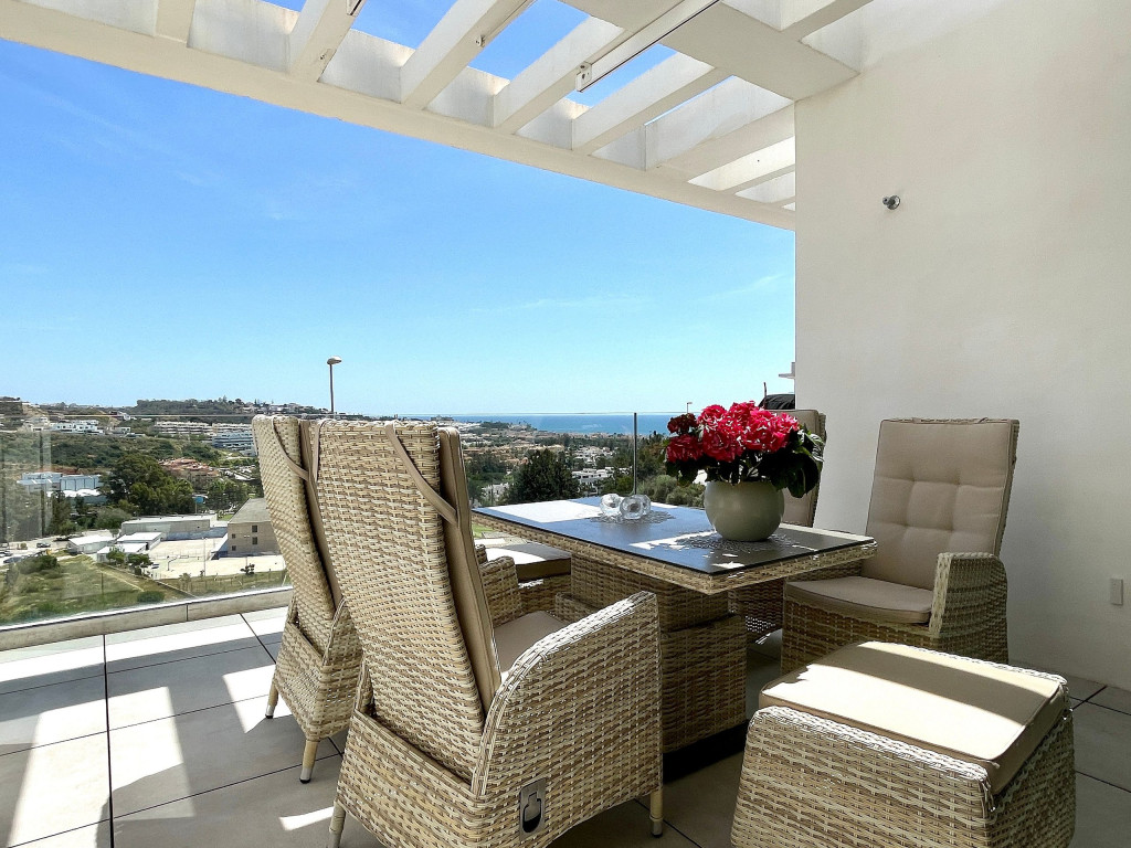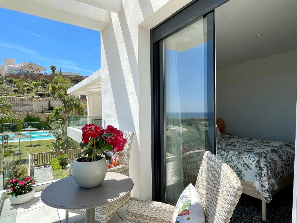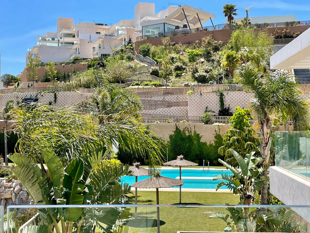 Um apartamento espetacular na popular Casa banderas em La Cala de Mijas. Vista mar, vista montanha e vista piscina.