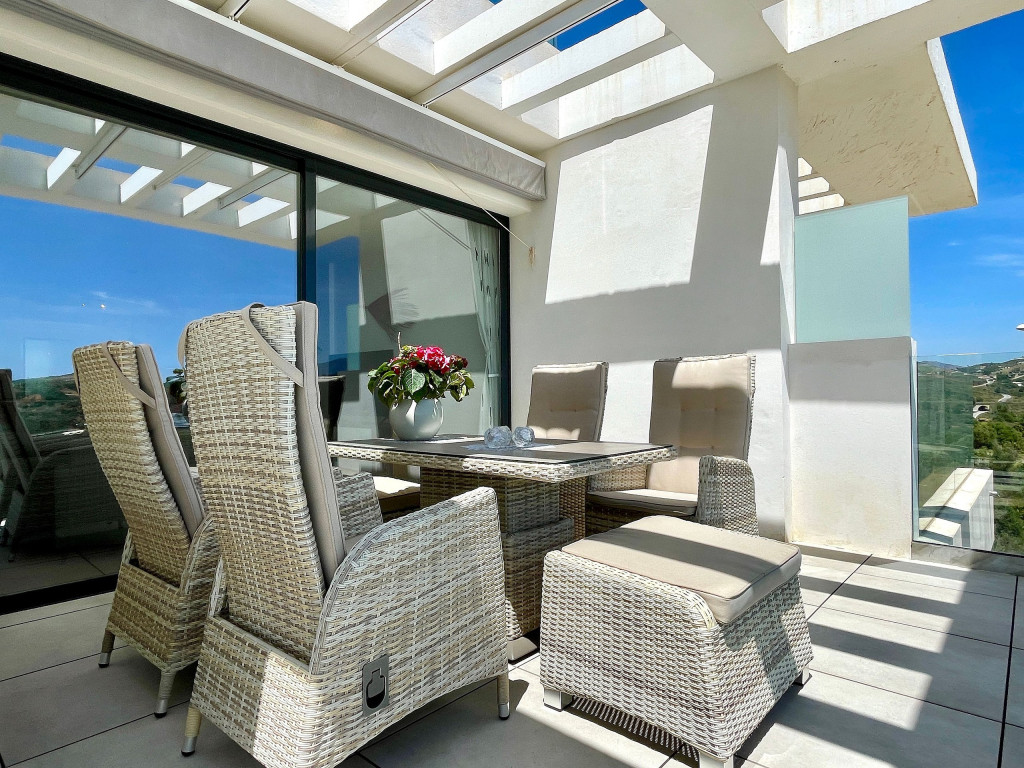 Um terraço privado com vista panorâmica para desfrutar durante a estadia, fácil acesso à estrada que leva a La Cala, supermercado e praia. Acesso ao terraço da sala de estar e do quarto principal. quarto principal tem uma casa de banho privativa.