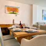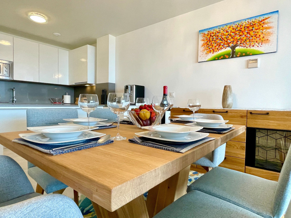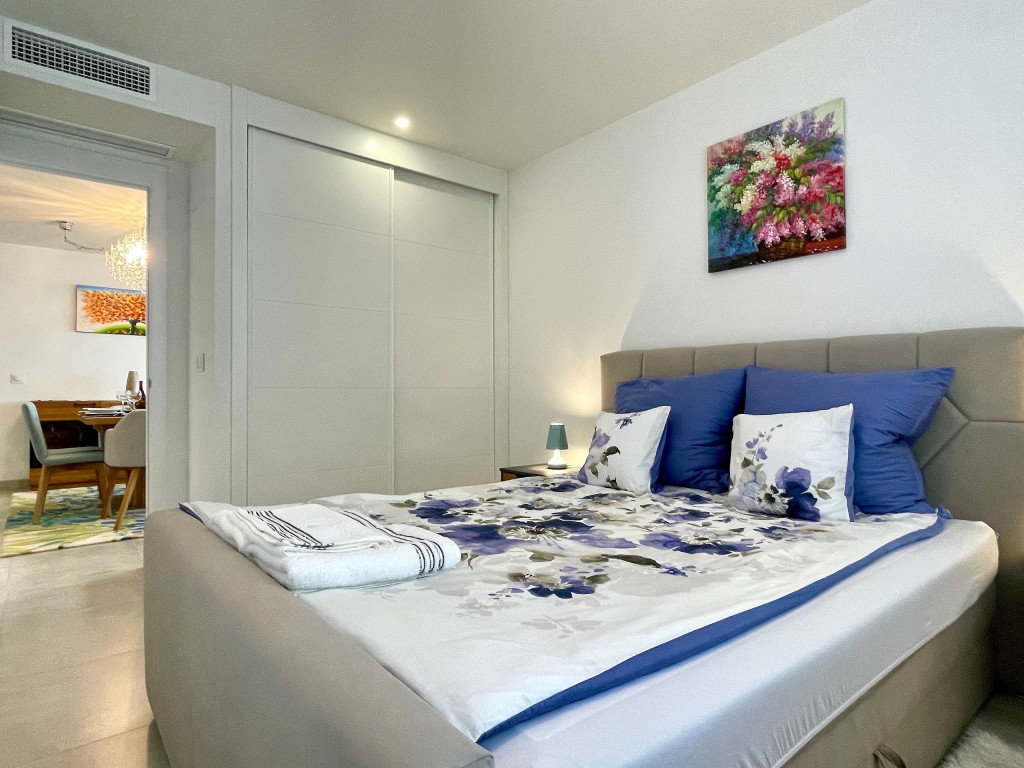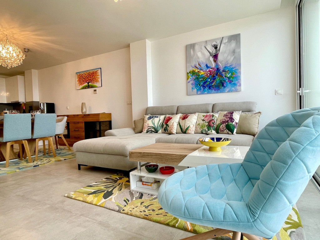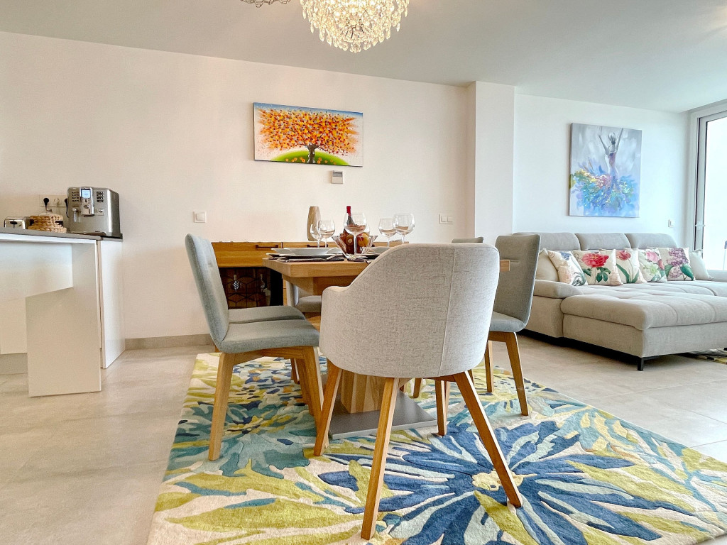 Uma excelente casa de férias com vista para o mar a partir do terraço privado, apartamento de 3 quartos decorado com bom gosto para até 6 pessoas. Casa de férias totalmente equipada. Funcionalidades na comunidade Casa Banderas: Campo de Padel, jacuzzi, Ginásio e Barbecues Comunais.
