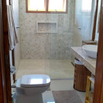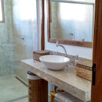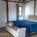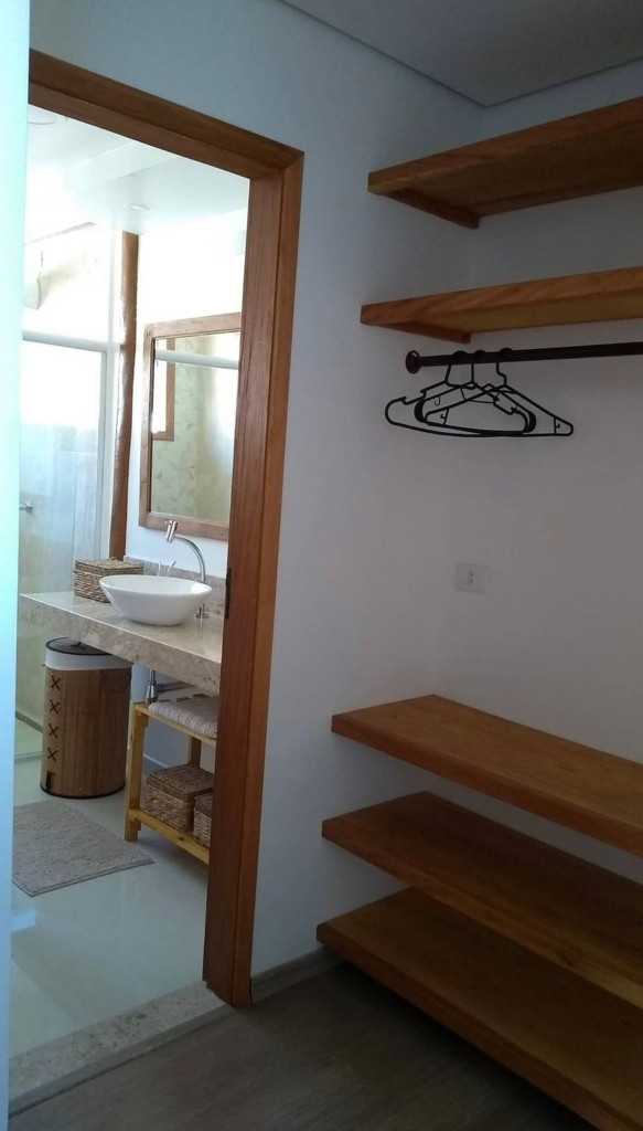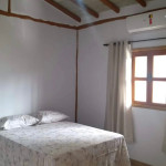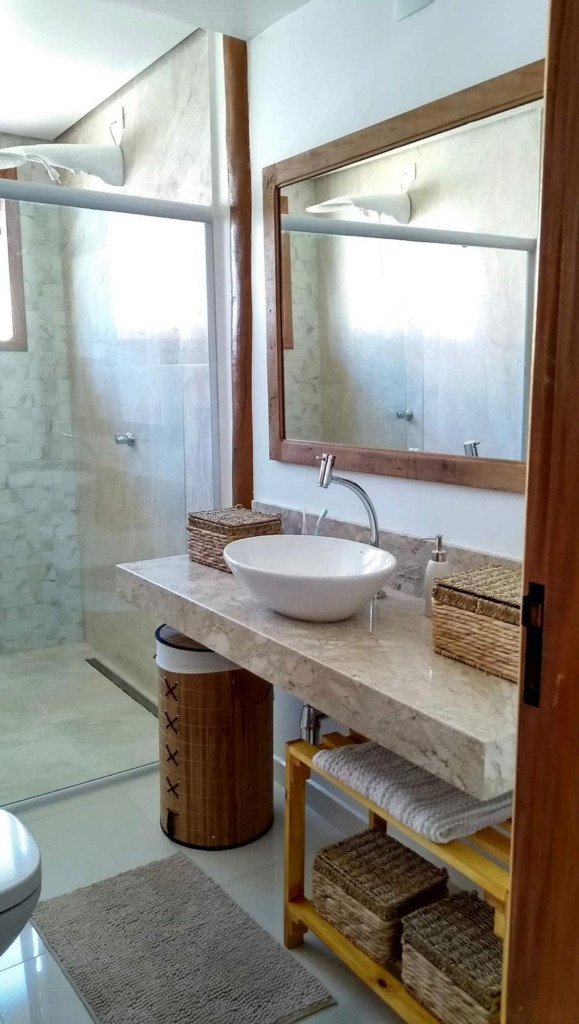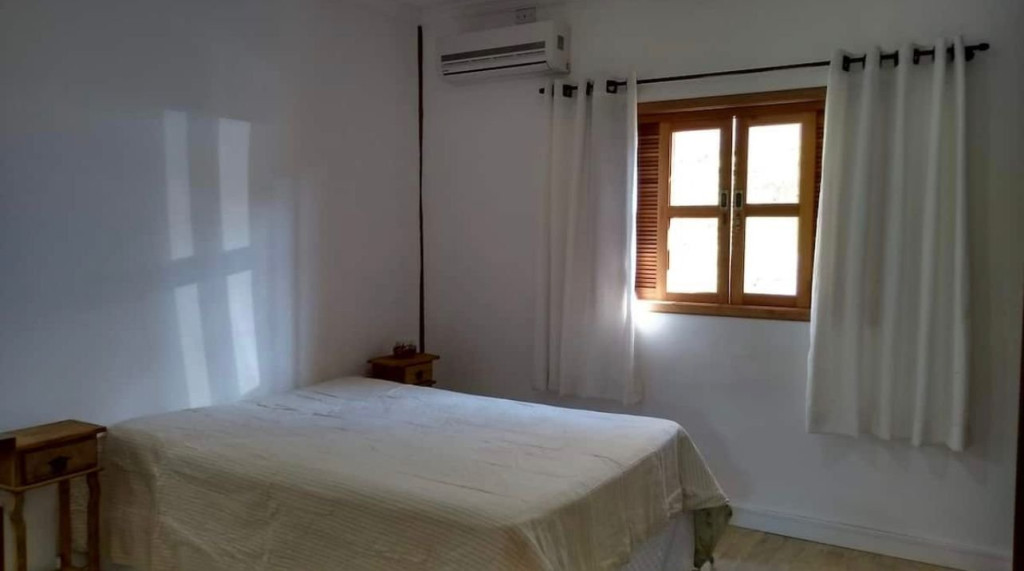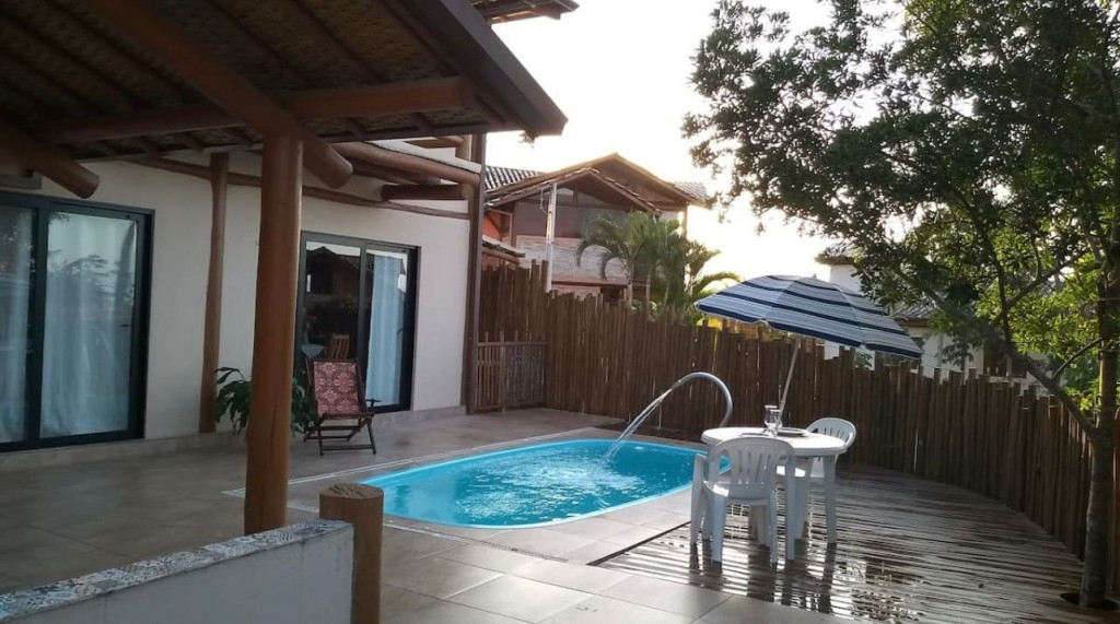 Casa disponível para até 6 pessoas, possui 3 suítes com ar condicionado, espaçosas e arejadas, uma delas no térreo e duas suítes no andar superior. Uma das suítes possui ampla sacada com uma vista para o mar e para a área de lazer.