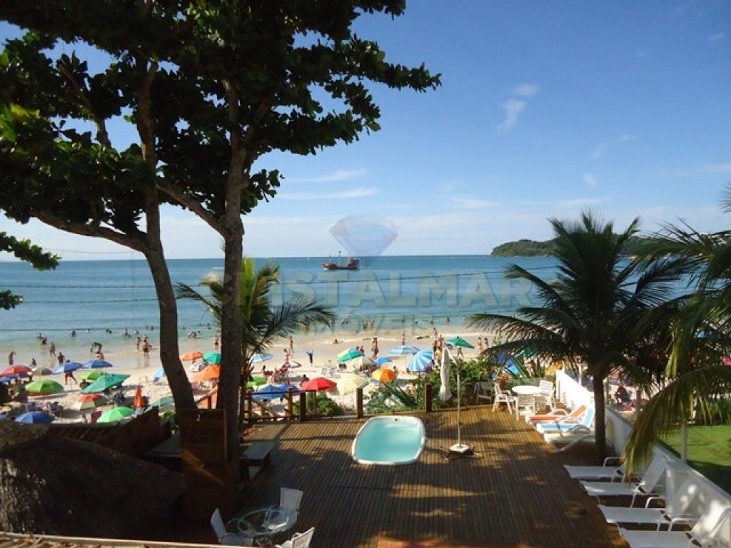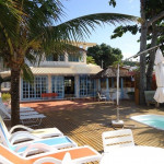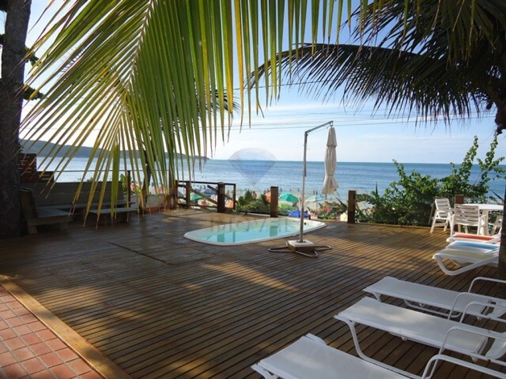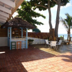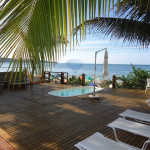 Possui deck voltado para o mar com PISCINA, cadeiras de praia, guarda-sóis e bar coberto de palha e lavabo externo