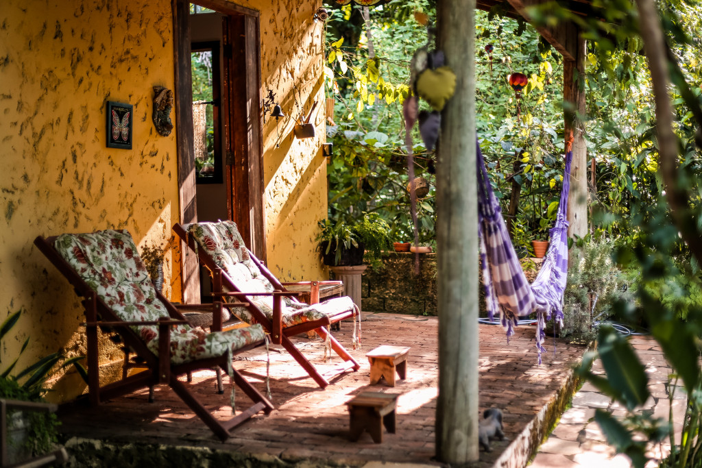 Temos a varanda com cadeiras confortáveis, para descansar e observar os pássaros e a natureza.
