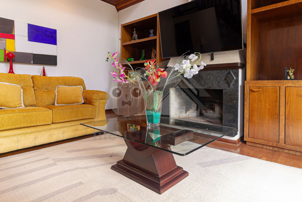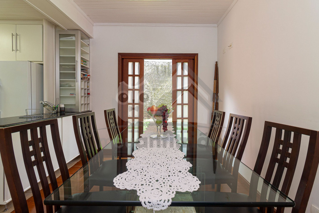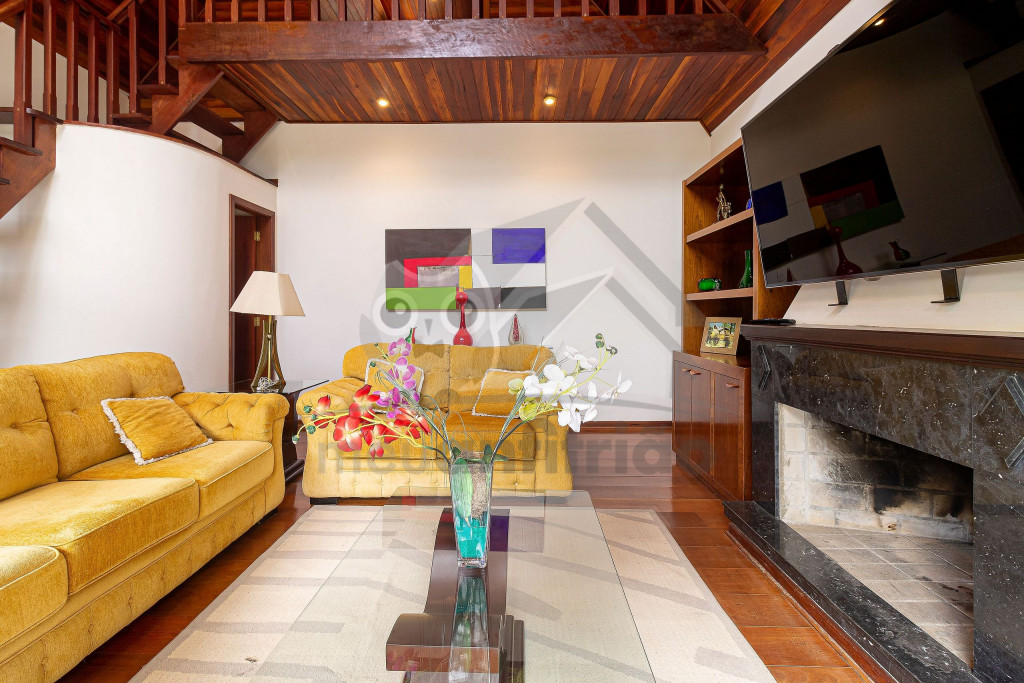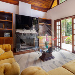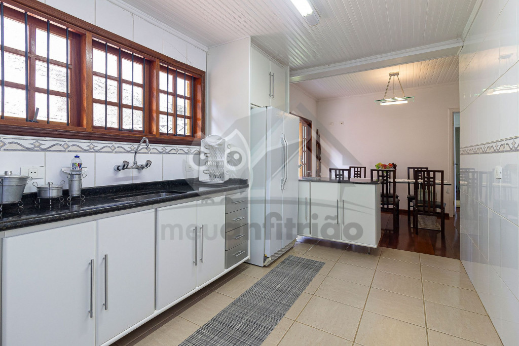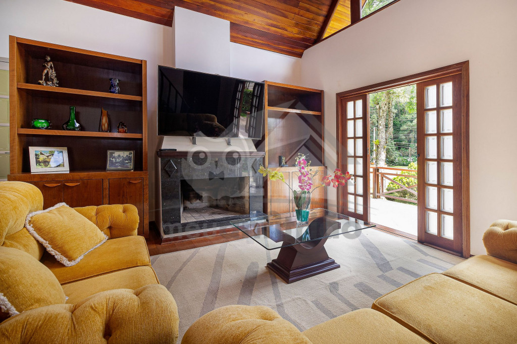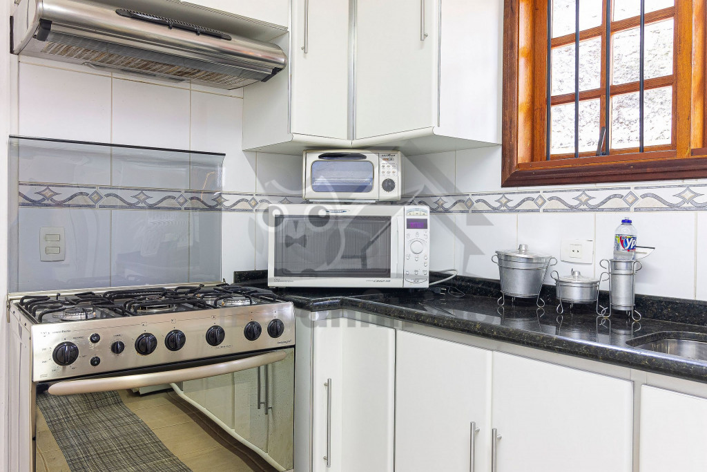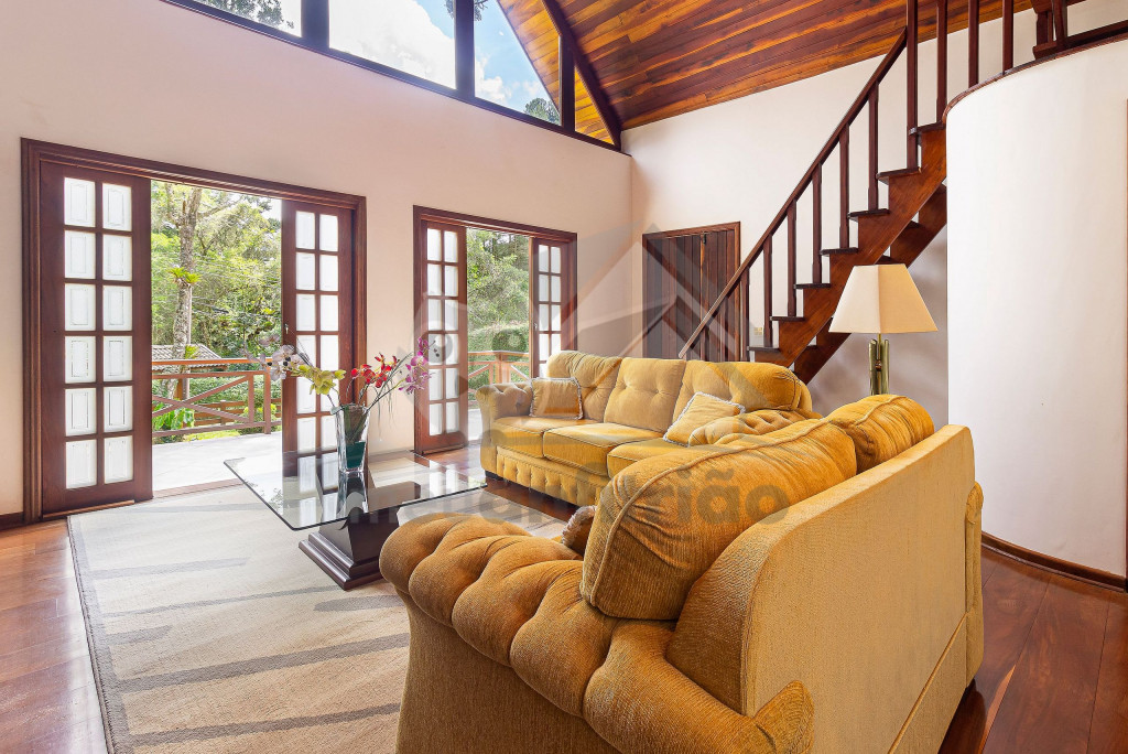 Logo ao chegar na casa, vai encontrar um lindo jardim e nossa garagem que comporta até 3 carros tranquilamente. Entrando pela porta da frente vai encontrar uma linda sala aconchegante com portas abertas para o jardim, poltronas, lavabo, sofás, uma televisão de 60 polegadas e lareira. Na parte superior temos um mezanino que possui uma varanda externa com vista para o quintal e uma linda janela que dá para frente da casa. Seguindo pela casa encontramos a mesa de jantar com 8 cadeiras e cozinha completa com todos os utensílios como geladeira de 2 portas, fogão de 5 bocas, forninho, microondas, panelas de fondue, entre outros objetos para uma estadia mais cômoda.