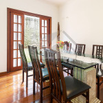 Saindo pela sala de jantar encontraremos a parte externa da casa, com quintal, jardim e espaço gourmet .