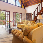 Na área dos dormitórios teremos um banheiro, 2 suítes amplas de casal e um quarto que comporta mais quatro pessoas, dois dos quartos possuem portas balcão com vista para o jardim.