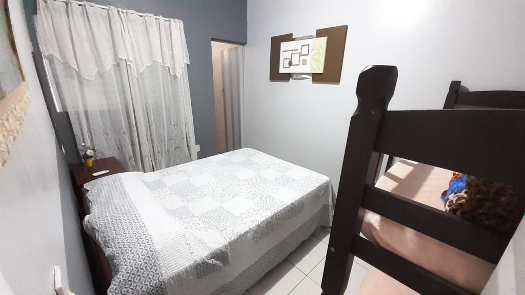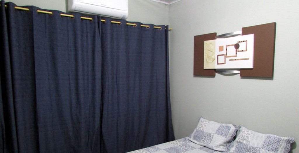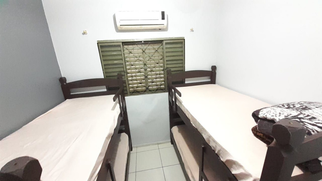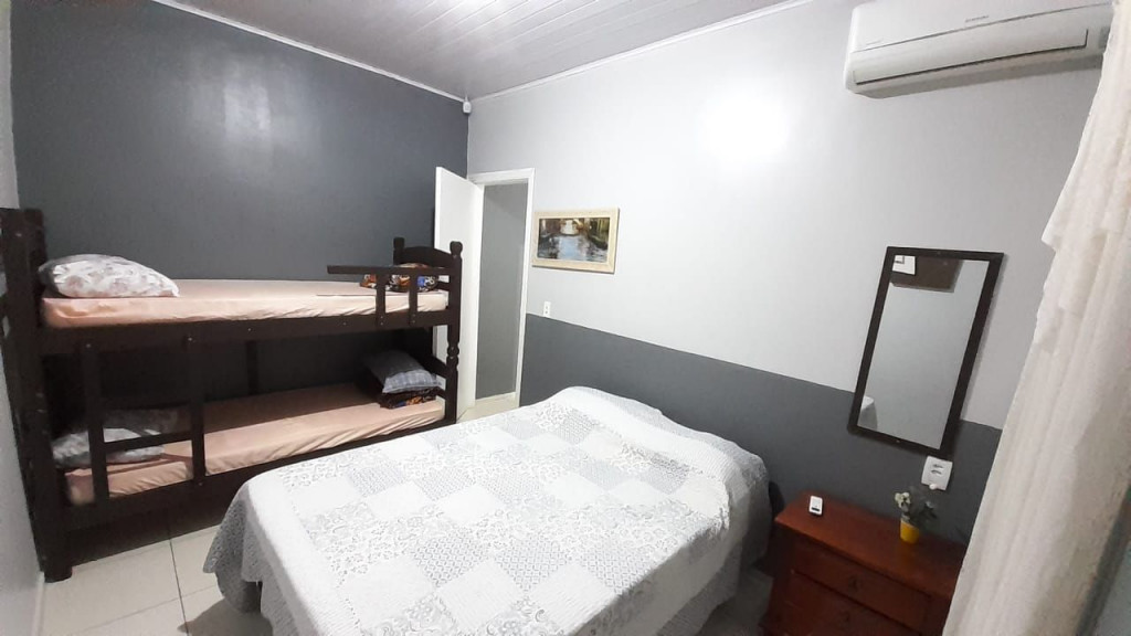 Casa com dois quartos, um sendo suíte, todos com ar condicionados.