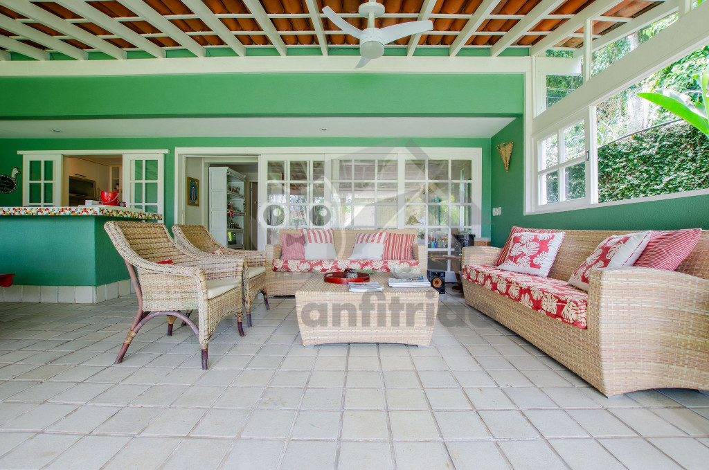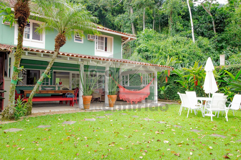 A sala é ampla, bem arejada e conta com uma ótima iluminação, além de ser equipada com televisão, ar-condicionado, poltronas e um sofá bem espaçoso. A decoração é de muito bom gosto e pensada para que nossos hóspedes se sintam em casa. A cozinha é completa com todos os equipamentos necessários durante a estadia, incluindo uma dispensa grande, duas geladeiras e um freezer. Na área de serviço temos 2 máquinas de secar roupas e uma máquina de lavar . A casa conta também com internet de 250 megas fibra, ideal para quem quer trabalhar home office em alta velocidade..No valor das diárias está incluso os serviços da governanta da casa, ela estará na casa das 9hs as 18hs para arrumação geral e cozinhar o básico. O que trará mais conforto e praticidade para a sua estadia.Outro ponto alto da nossa estadia é que possuímos uma lancha moderna com marinheiro para levar até 10 hóspedes para um passeio de alto estilo, esse serviço adicional também pode ser contratado a parte. Nosso marinheiro trabalha conosco a 16 anos e conhece muito bem a região. Vocês estarão em boas mãos!Contamos, ainda, com uma área externa equipada com ventiladores de teto, sofás, mesa para oito lugares e uma rede de descanso. Tudo isso de frente para um jardim cercado pela Mata Atlântica.