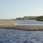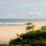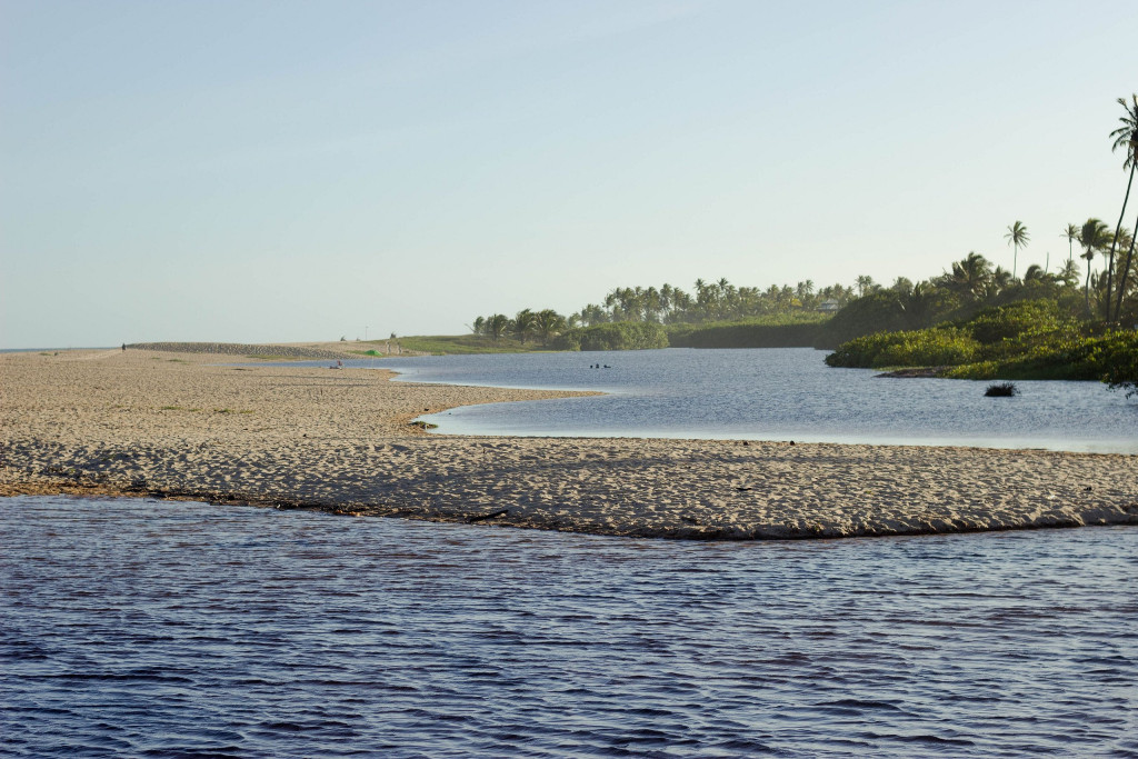 O acesso à praia pode ser feito caminhando por poucos metros até o rio Imbassaí, basta cruzar a ponte e subir a duna para se deparar com a vista do mar.