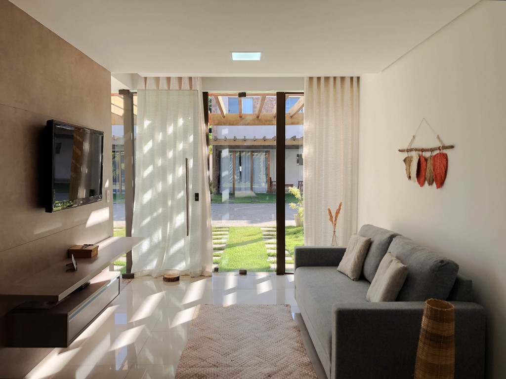 Localizada no condomínio de casas conjugadas Villa de Imbassaí Residence, nossa casa possui 105m2, acomoda até 6 pessoas em 3 suítes e é ideal para quem busca boa localização e praticidade. Para o lazer ficar ainda mais completo o condomínio conta com piscina na área comum.