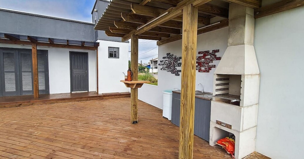 Casa de praia, aconchegante e acolhedora. Possui toda comodidade para uma estadia agradável e divertida. Com um quarto, banheiro, sala e cozinha em conceito aberto.