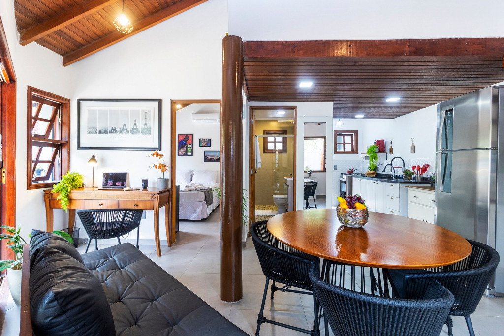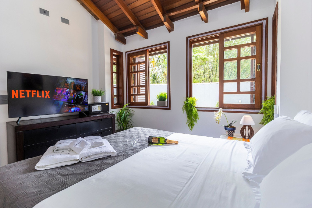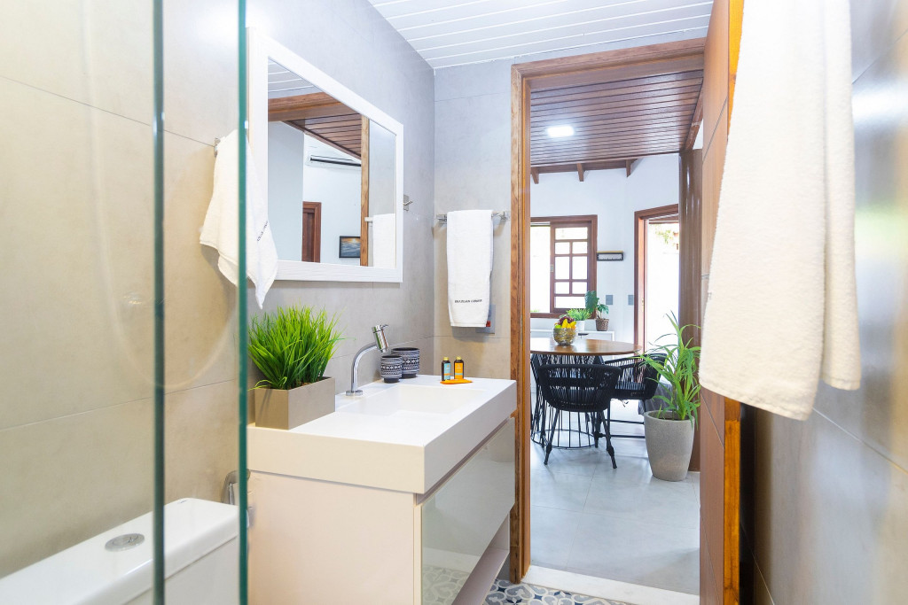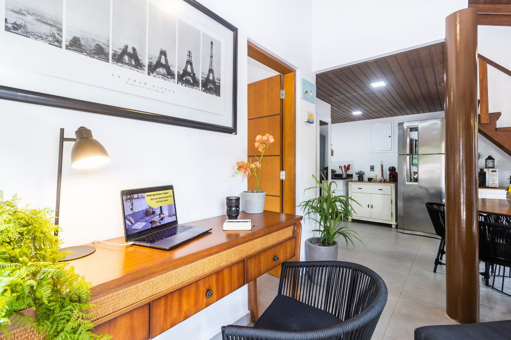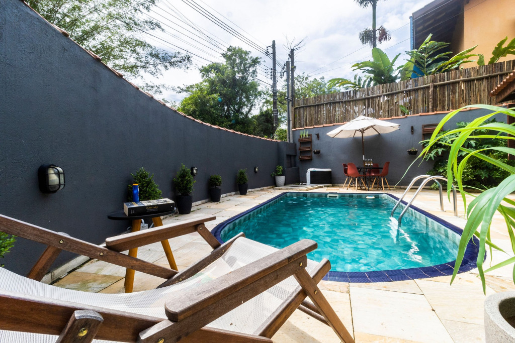 SALA: - Sofá-cama: O sofá se converte em uma superfície ampla e agradável para uma noite de sono tranquila. Seus mecanismos são fáceis de usar, permitindo uma transição suave entre as duas funções, é uma opção prática para acomodar vocês durante a noite. - Internet Ultra-Veloz: Mantenha-se conectado com o mundo durante sua estadia. Oferecemos acesso à internet de alta velocidade para que você possa compartilhar suas experiências e manter-se atualizado em todos os ambientes. - Mesa de Jantar para 4 pessoas: Compartilhe momentos especiais com amigos e familiares em torno de uma mesa espaçosa e elegante. Nossa mesa de jantar comporta até 4 pessoas, proporcionando um ambiente perfeito para refeições memoráveis. - Mesa de Trabalho: Seja para trabalhar remotamente, estudar ou apenas navegar na internet, nossa mesa de trabalho proporciona um espaço confortável e funcional. Mantenha-se produtivo durante suas férias ou viagens de negócios. - Ar condicionado: Mantenha-se fresco e confortável durante toda a sua estadia. Nosso imóvel possui ar condicionado para garantir uma temperatura agradável. - Fechadura Digital: Priorizamos sua segurança e tranquilidade. Nossa locação conta com uma fechadura digital de alta tecnologia, proporcionando praticidade e evitando a preocupação com chaves. QUARTO: Cada quarto em nossas locações são cuidadosamente decorado e mobiliado, oferecendo conforto e privacidade para todos os inquilinos - Descrição detalhada dos quartos: São dois quartos, um deles é composto por uma cama de casal, e o segundo quarto sendo no segundo andar com uma cama de casal e uma bicama de solteiro. - Smart TV de 43 polegadas: Relaxe e desfrute de uma ampla variedade de entretenimento, no sofá da sala, com nossa Smart TV de alta definição. Assista aos seus filmes e programas favoritos com qualidade excepcional. - Ar condicionado: Mantenha-se fresco e confortável durante toda a sua estadia. Nosso imóvel possui ar condicionado para garantir uma temperatura agradável. COZINHA: Nossa cozinha está muito bem equipada. Prepare deliciosas refeições na nossa cozinha completa e moderna. Equipada com todos os utensílios e eletrodomésticos necessários, você terá liberdade para explorar suas habilidades culinárias. - Taças de vinho: Brinde momentos memoráveis com taças de vinho prontas para receber suas celebrações. - Fogão: Sinta-se em casa na nossa cozinha, completa com um moderno fogão, proporcionando a flexibilidade para preparar suas refeições favoritas. Seja um mestre culinário ou alguém que gosta de experimentar novos sabores, você terá tudo o que precisa à sua disposição. - Forno: Se você adora cozinhar e desfrutar de refeições deliciosas, você vai se encantar com nossa cozinha equipada com um moderno forno. Deixe sua criatividade culinária fluir enquanto prepara pratos incríveis. Desfrute de refeições caseiras deliciosas e aconchegantes sem abrir mão do conforto. - Microondas: Prepare suas refeições com praticidade e rapidez, tendo à disposição um micro-ondas moderno e funcional. - Máquina Dolce Gusto: Desperte seus sentidos com uma xícara de café fresco todas as manhãs. Em nossa locação, disponibilizamos uma máquina Dolce Gusto para que você possa apreciar a sua bebida preferida. No entanto, é necessário trazer suas próprias cápsulas de café, pois não fornecemos. BANHEIROS: - Secador de Cabelo: Para sua conveniência, disponibilizamos um secador de cabelo de qualidade em nosso imóvel. Dessa forma, você não precisa se preocupar em trazer o seu, permitindo que você viaje mais leve e confortável. - Chuveiro elétrico: Proporcionando conforto em todos os detalhes, garantindo um banho quente e relaxante em qualquer momento do dia. LAVANDERIA: - Máquina lava e seca: Mantenha suas roupas limpas e frescas durante toda a estadia com nossa máquina lava e seca. - Tábua e Ferro de Passar: Tenha suas roupas sempre impecáveis, com uma tábua e ferro de passar à disposição. - Varal para estender roupa: Simplifique seu dia a dia com a conveniência de um varal para secar e arejar suas roupas. VARANDA: - Varanda com Cadeira e Mesa: Aproveite momentos relaxantes ao ar livre em nossa varanda, equipada com cadeiras e mesa. Desfrute de uma xícara de café da manhã, leia um livro ou simplesmente aprecie a paisagem ao seu redor. - Churrasqueira: Nossa propriedade oferece uma churrasqueira completa para que você possa saborear deliciosas refeições com seus familiares e amigos em momentos únicos de confraternização. - Piscina: Mergulhe, relaxe e aproveite a nossa piscina, oferecendo momentos de alegria e descontração. ADMINISTRAÇÃO DO IMÓVEL: O Imóvel é administrado pela Brazilian Corner, uma empresa nacional que oferece aos seus clientes, que viajam a lazer ou negócios, a experiência de locar imóveis únicos durante uma temporada. As residências são planejadas para prover grande conforto. Nosso escritório fica no bairro Vila Madalena em São Paulo. Desde 2018, a Brazilian Corner é pioneira em seu ramo, pois além de proporcionar imóveis bem estruturados, também é responsável por toda a logística e suprimentos básicos que compõem cada uma de suas residências, o que as torna extremamente funcionais. Nosso grande diferencial é a boa comunicação e a seriedade com que atuamos para resolver qualquer entrave que possa acontecer antes, durante, e/ou após a estadia de nossos clientes. Nossos colaboradores são treinados e têm as ferramentas necessárias para proporcionar um excelente nível de serviço. Os apartamentos e casas são limpos por nossas equipes especializadas, a nossas roupas de cama e banho são lavadas e higienizadas em lavanderias profissionais. Mantemos o profissionalismo em tudo o que fazemos para, dessa forma, garantir a tranquilidade e confiança de nossos clientes. COMPROMISSO COM A INCLUSÃO: Na Brazilian Corner, acreditamos que a diversidade é o que torna o mu