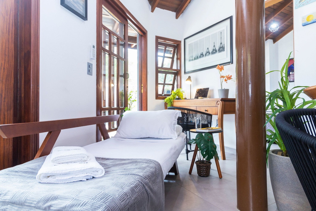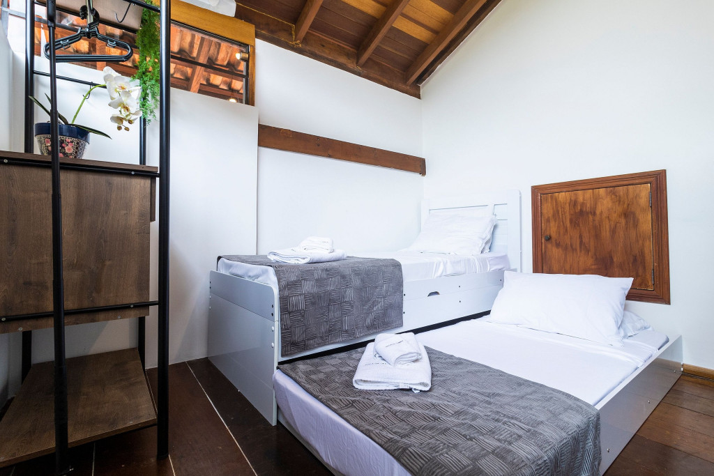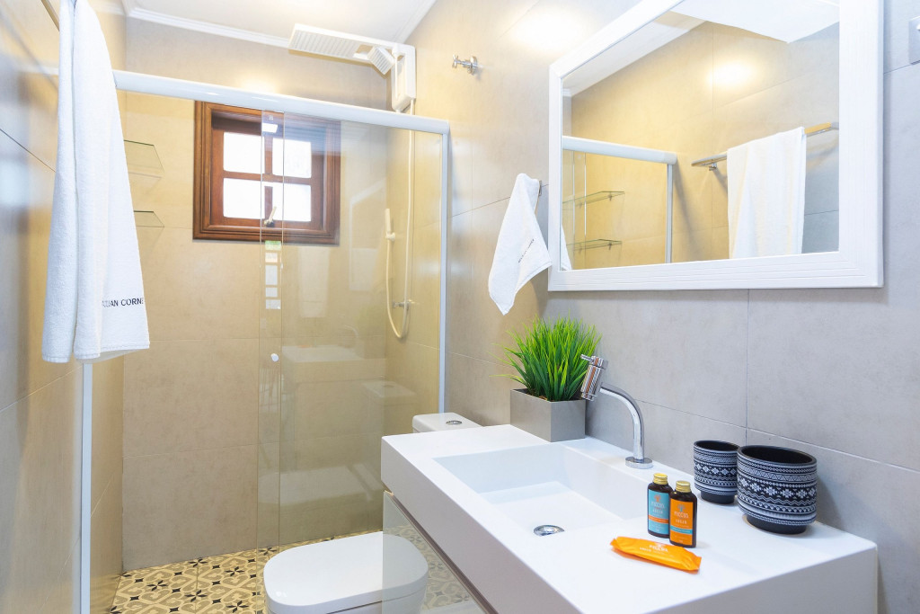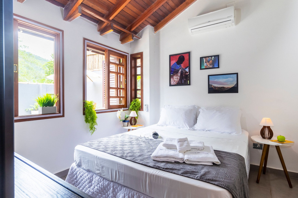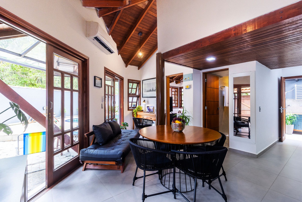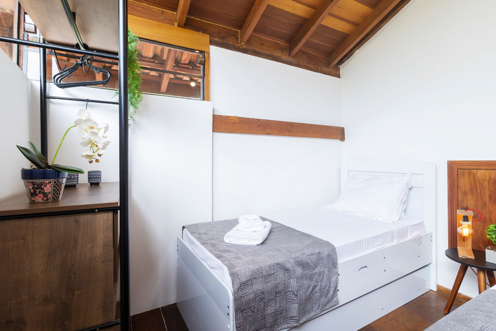 SALA: - Sofá-cama: O sofá se converte em uma superfície ampla e agradável para uma noite de sono tranquila. Seus mecanismos são fáceis de usar, permitindo uma transição suave entre as duas funções, é uma opção prática para acomodar vocês durante a noite. - Internet Ultra-Veloz: Mantenha-se conectado com o mundo durante sua estadia. Oferecemos acesso à internet de alta velocidade para que você possa compartilhar suas experiências e manter-se atualizado em todos os ambientes. - Mesa de Jantar para 4 pessoas: Compartilhe momentos especiais com amigos e familiares em torno de uma mesa espaçosa e elegante. Nossa mesa de jantar comporta até 4 pessoas, proporcionando um ambiente perfeito para refeições memoráveis. - Mesa de Trabalho: Seja para trabalhar remotamente, estudar ou apenas navegar na internet, nossa mesa de trabalho proporciona um espaço confortável e funcional. Mantenha-se produtivo durante suas férias ou viagens de negócios. - Ar condicionado: Mantenha-se fresco e confortável durante toda a sua estadia. Nosso imóvel possui ar condicionado para garantir uma temperatura agradável. - Fechadura Digital: Priorizamos sua segurança e tranquilidade. Nossa locação conta com uma fechadura digital de alta tecnologia, proporcionando praticidade e evitando a preocupação com chaves. QUARTO: Cada quarto em nossas locações são cuidadosamente decorado e mobiliado, oferecendo conforto e privacidade para todos os inquilinos - Descrição detalhada dos quartos: São dois quartos, um deles é composto por uma cama de casal, e o segundo quarto sendo no segundo andar com uma cama de casal e uma bicama de solteiro. - Smart TV de 43 polegadas: Relaxe e desfrute de uma ampla variedade de entretenimento, no sofá da sala, com nossa Smart TV de alta definição. Assista aos seus filmes e programas favoritos com qualidade excepcional. - Ar condicionado: Mantenha-se fresco e confortável durante toda a sua estadia. Nosso imóvel possui ar condicionado para garantir uma temperatura agradável. COZINHA: Nossa cozinha está muito bem equipada. Prepare deliciosas refeições na nossa cozinha completa e moderna. Equipada com todos os utensílios e eletrodomésticos necessários, você terá liberdade para explorar suas habilidades culinárias. - Taças de vinho: Brinde momentos memoráveis com taças de vinho prontas para receber suas celebrações. - Fogão: Sinta-se em casa na nossa cozinha, completa com um moderno fogão, proporcionando a flexibilidade para preparar suas refeições favoritas. Seja um mestre culinário ou alguém que gosta de experimentar novos sabores, você terá tudo o que precisa à sua disposição. - Forno: Se você adora cozinhar e desfrutar de refeições deliciosas, você vai se encantar com nossa cozinha equipada com um moderno forno. Deixe sua criatividade culinária fluir enquanto prepara pratos incríveis. Desfrute de refeições caseiras deliciosas e aconchegantes sem abrir mão do conforto. - Microondas: Prepare suas refeições com praticidade e rapidez, tendo à disposição um micro-ondas moderno e funcional. - Máquina Dolce Gusto: Desperte seus sentidos com uma xícara de café fresco todas as manhãs. Em nossa locação, disponibilizamos uma máquina Dolce Gusto para que você possa apreciar a sua bebida preferida. No entanto, é necessário trazer suas próprias cápsulas de café, pois não fornecemos. BANHEIROS: - Secador de Cabelo: Para sua conveniência, disponibilizamos um secador de cabelo de qualidade em nosso imóvel. Dessa forma, você não precisa se preocupar em trazer o seu, permitindo que você viaje mais leve e confortável. - Chuveiro elétrico: Proporcionando conforto em todos os detalhes, garantindo um banho quente e relaxante em qualquer momento do dia. LAVANDERIA: - Máquina lava e seca: Mantenha suas roupas limpas e frescas durante toda a estadia com nossa máquina lava e seca. - Tábua e Ferro de Passar: Tenha suas roupas sempre impecáveis, com uma tábua e ferro de passar à disposição. - Varal para estender roupa: Simplifique seu dia a dia com a conveniência de um varal para secar e arejar suas roupas. VARANDA: - Varanda com Cadeira e Mesa: Aproveite momentos relaxantes ao ar livre em nossa varanda, equipada com cadeiras e mesa. Desfrute de uma xícara de café da manhã, leia um livro ou simplesmente aprecie a paisagem ao seu redor. - Churrasqueira: Nossa propriedade oferece uma churrasqueira completa para que você possa saborear deliciosas refeições com seus familiares e amigos em momentos únicos de confraternização. - Piscina: Mergulhe, relaxe e aproveite a nossa piscina, oferecendo momentos de alegria e descontração. ADMINISTRAÇÃO DO IMÓVEL: O Imóvel é administrado pela Brazilian Corner, uma empresa nacional que oferece aos seus clientes, que viajam a lazer ou negócios, a experiência de locar imóveis únicos durante uma temporada. As residências são planejadas para prover grande conforto. Nosso escritório fica no bairro Vila Madalena em São Paulo. Desde 2018, a Brazilian Corner é pioneira em seu ramo, pois além de proporcionar imóveis bem estruturados, também é responsável por toda a logística e suprimentos básicos que compõem cada uma de suas residências, o que as torna extremamente funcionais. Nosso grande diferencial é a boa comunicação e a seriedade com que atuamos para resolver qualquer entrave que possa acontecer antes, durante, e/ou após a estadia de nossos clientes. Nossos colaboradores são treinados e têm as ferramentas necessárias para proporcionar um excelente nível de serviço. Os apartamentos e casas são limpos por nossas equipes especializadas, a nossas roupas de cama e banho são lavadas e higienizadas em lavanderias profissionais. Mantemos o profissionalismo em tudo o que fazemos para, dessa forma, garantir a tranquilidade e confiança de nossos clientes. COMPROMISSO COM A INCLUSÃO: Na Brazilian Corner, acreditamos que a diversidade é o que torna o mu