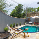A casa com piscina está localizada na Barra do Una, Litoral Norte de São Paulo, a apenas 6 quadras (750 metros) de distância da praia (10 minutos a pé). O espaço é ideal para uma estadia divertida e confortável, pois conta com uma cozinha completa e muito bem equipada, Airfryer, forno, internet ultra-veloz, ar condicionado em todos os cômodos, SmartTV, churrasqueira, guarda-sol, cadeira espreguiçadeira, máquina de lavar e enxoval completo de cama e banho.