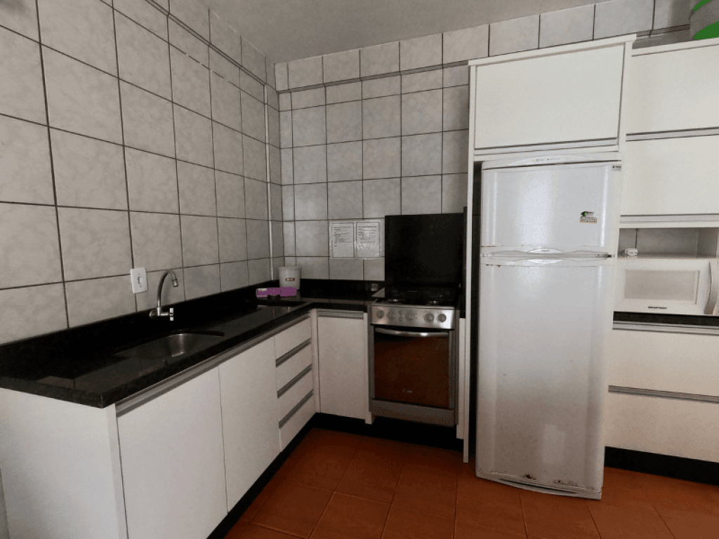 - Cozinha completa com fogão, geladeira, microondas e demais utensílios básicos necessários à hospedagem