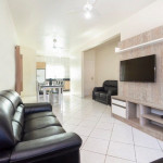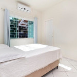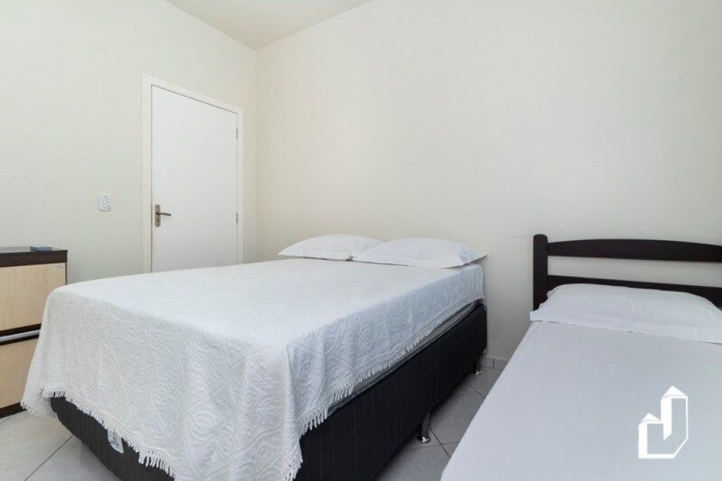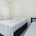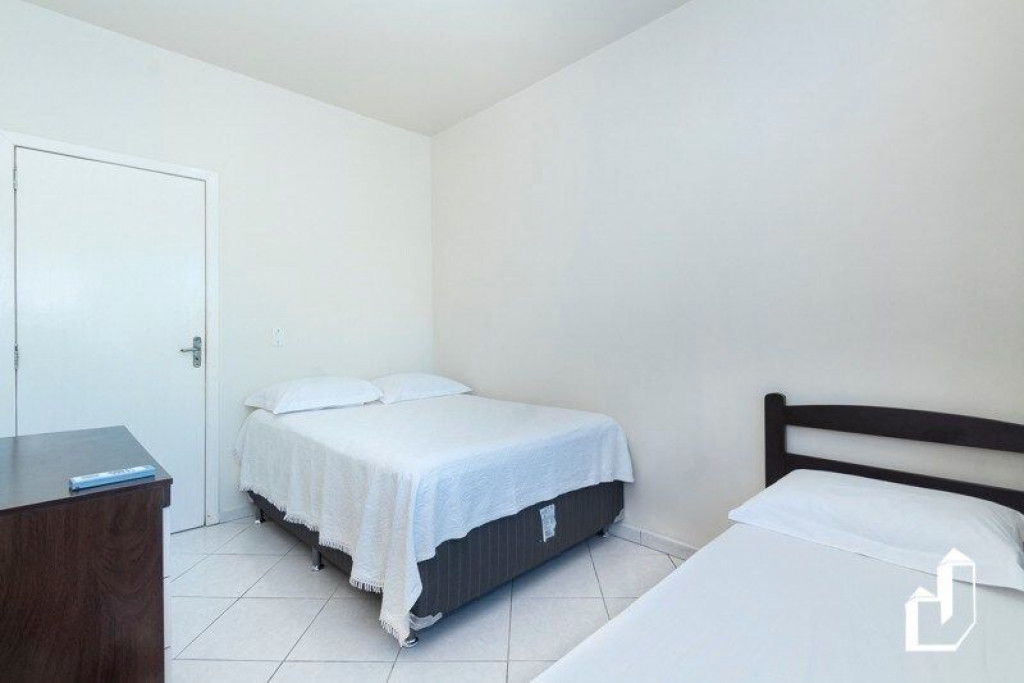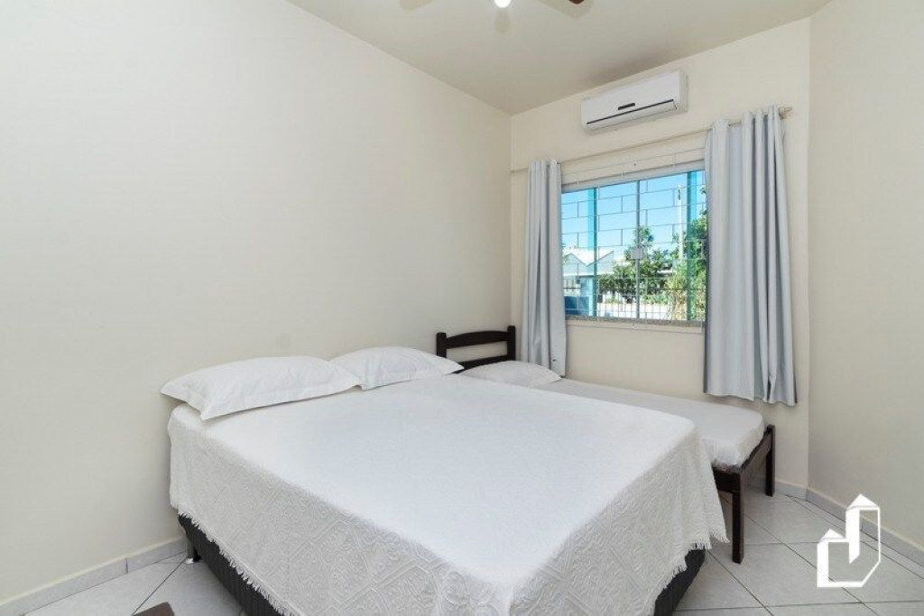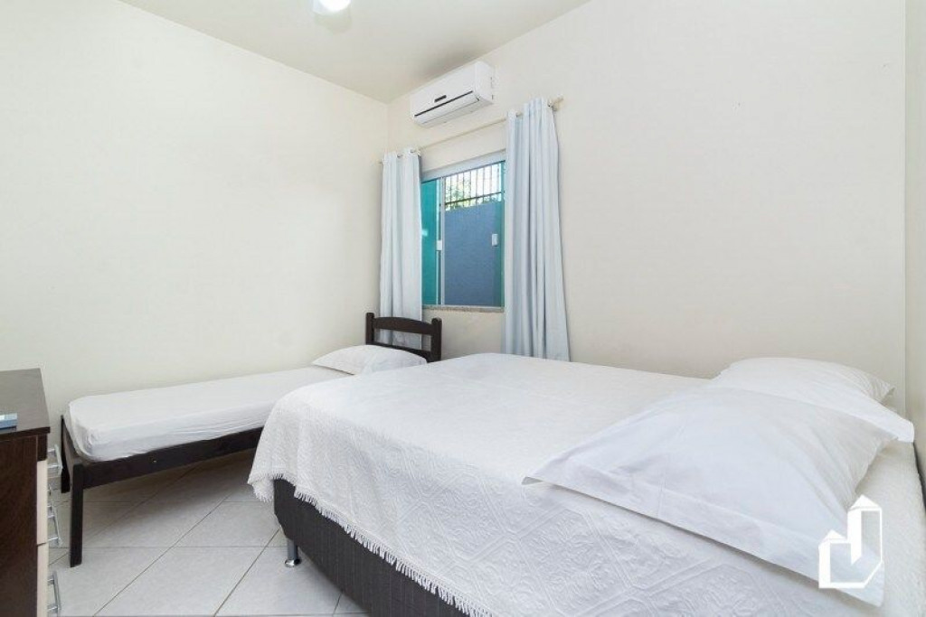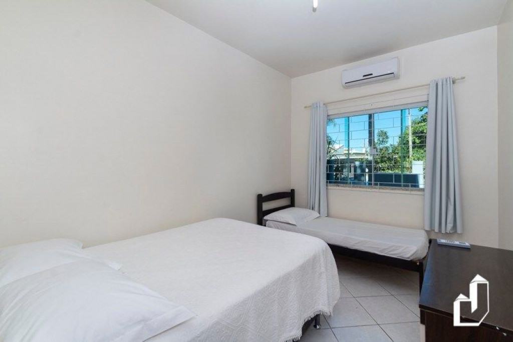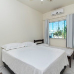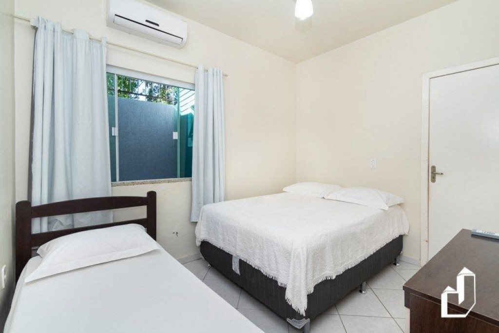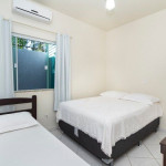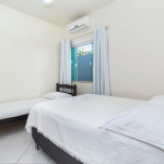 01 dormitório com uma cama de casal e uma cama de solteiro com ar-condicionado;