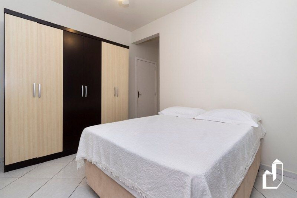 01 dormitório com uma cama de casal com ar-condicionado.