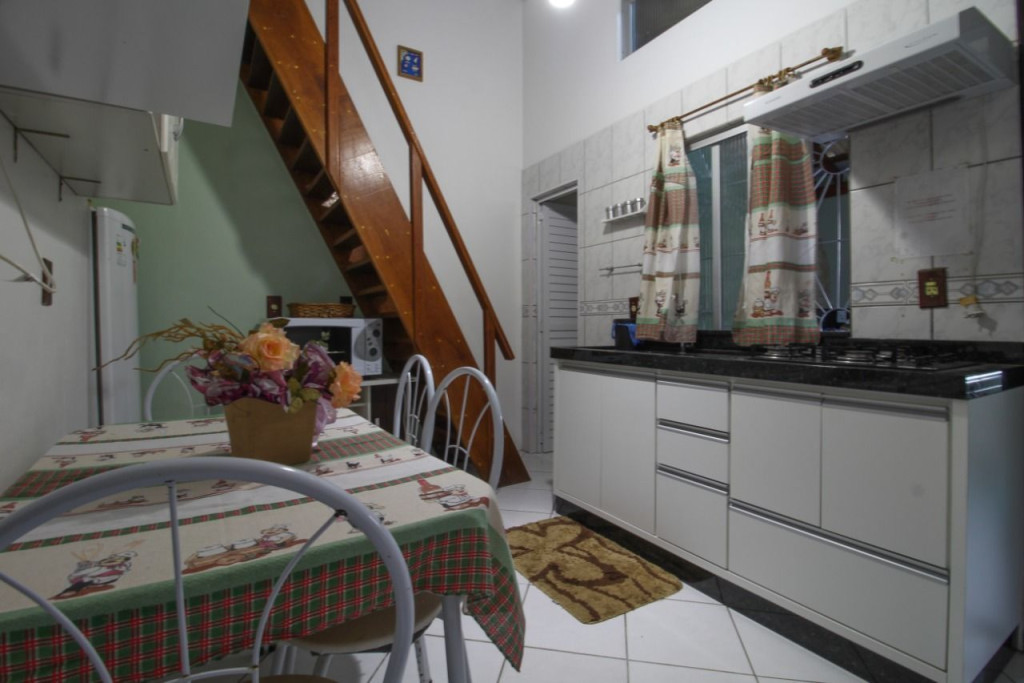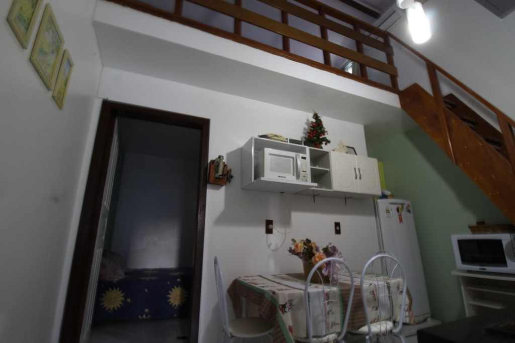 O casa com pátio compartilhado, acomoda até 4 pessoas (capacidade máxima incluindo crianças de qualquer idade) localizado no centro da praia de Bombinhas.