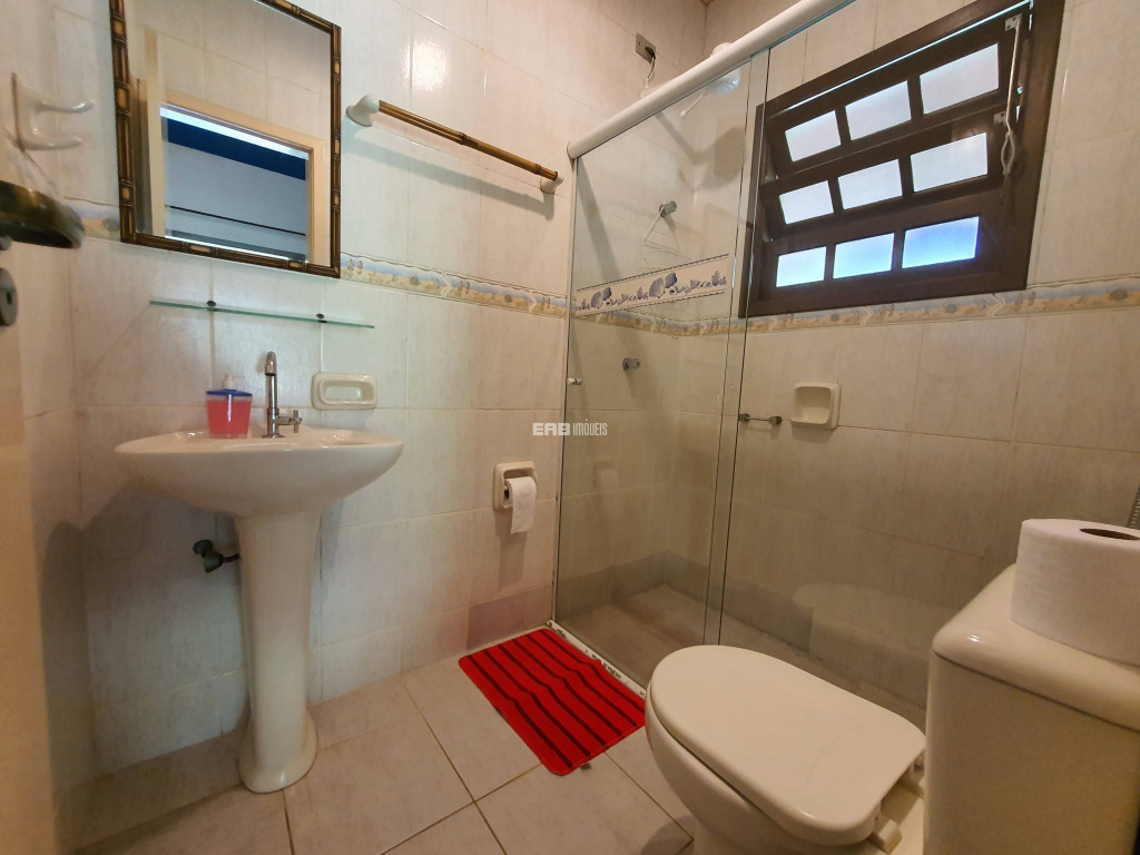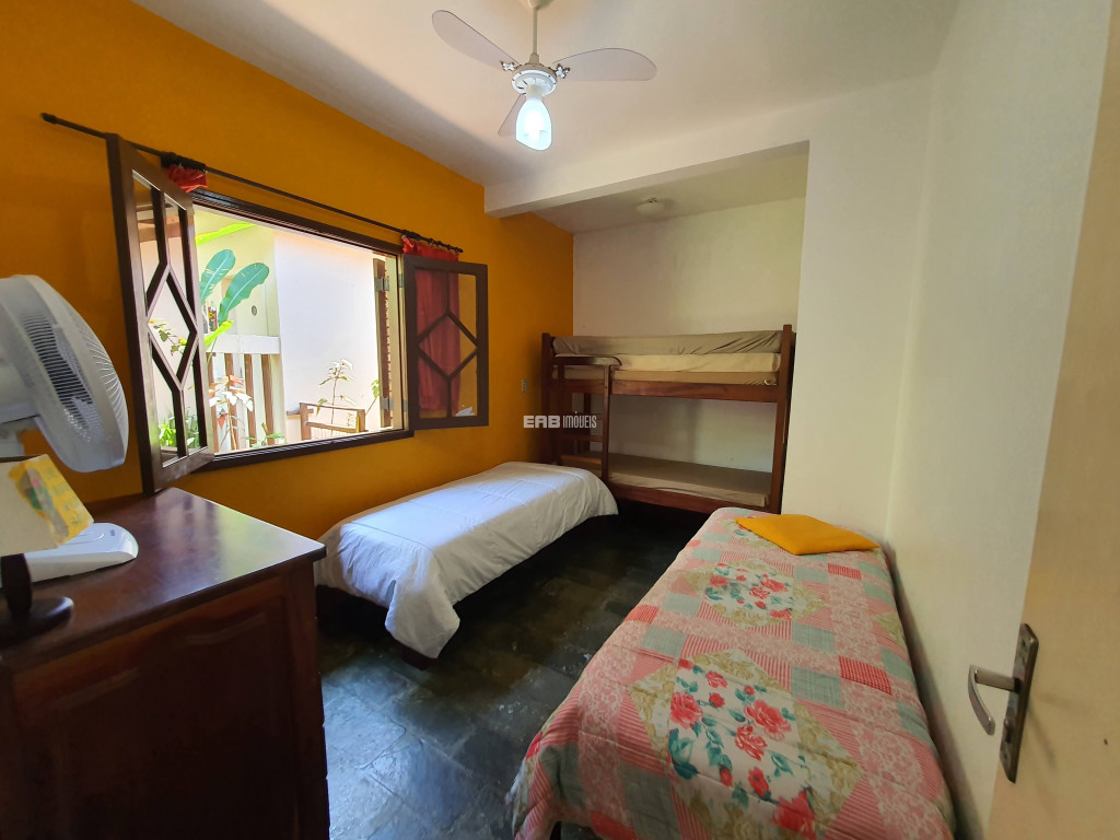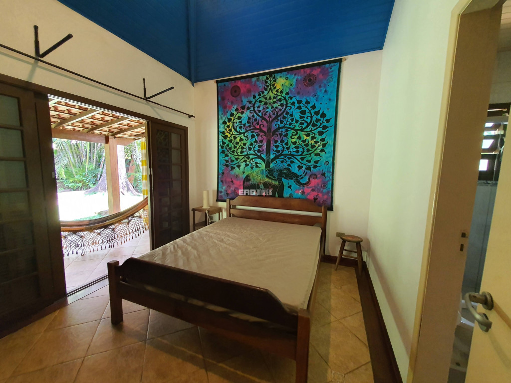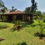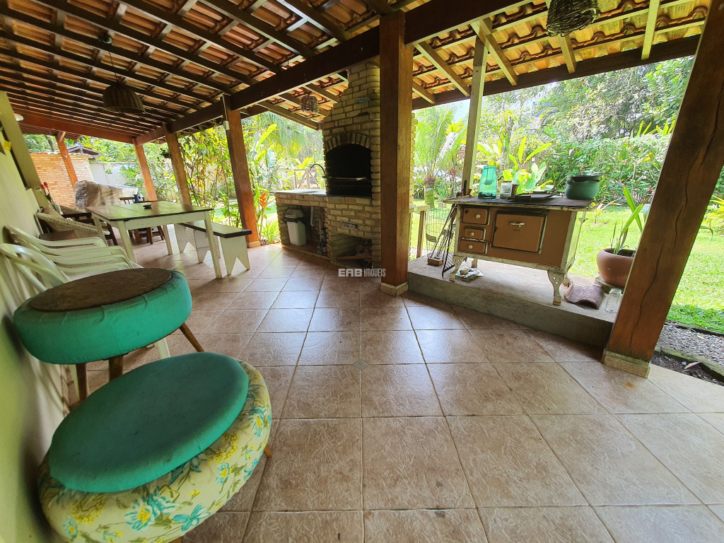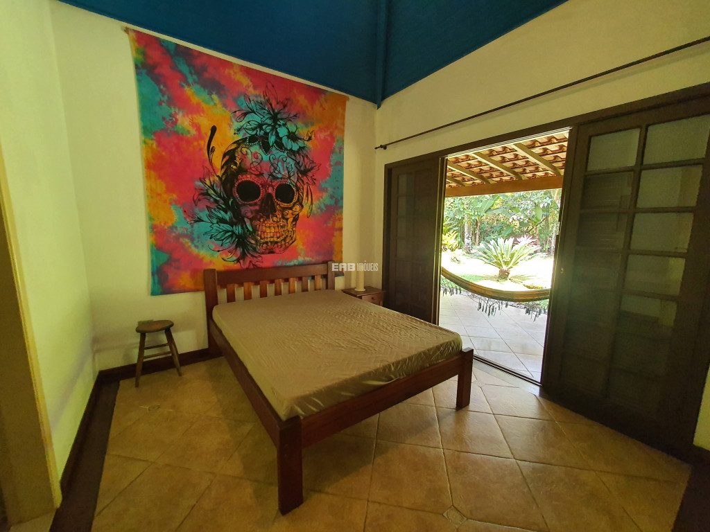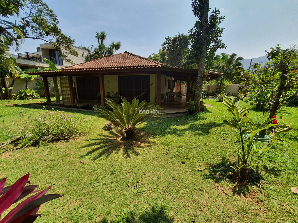 Primeira casa a partir da praia. Casa espaçosa, com 5 dormitórios, sendo 3 suítes, que se abrem para a varanda e recebem a brisa do mar. Alvenaria com acabamento de tijolo à vista, portas e janelas em mogno. Ampla e agradável varanda com churrasqueira, envolta por muito verde. Excelente localização, bem equipada e confortável.