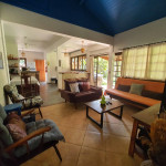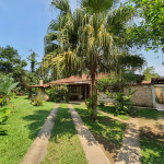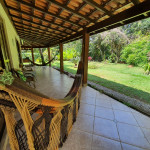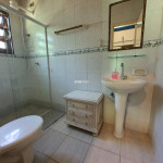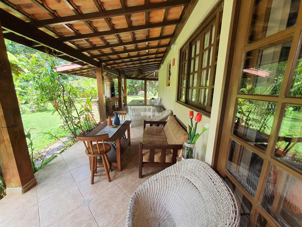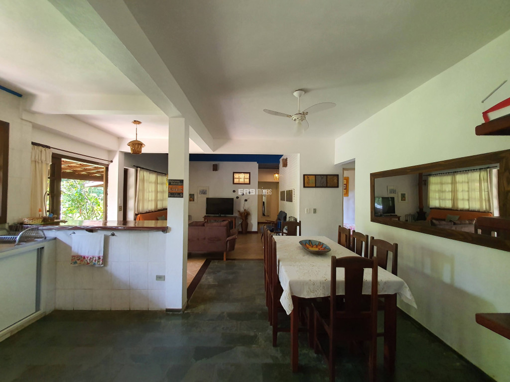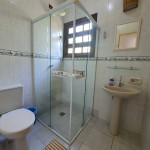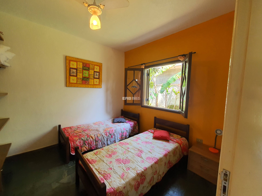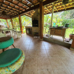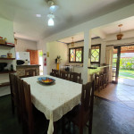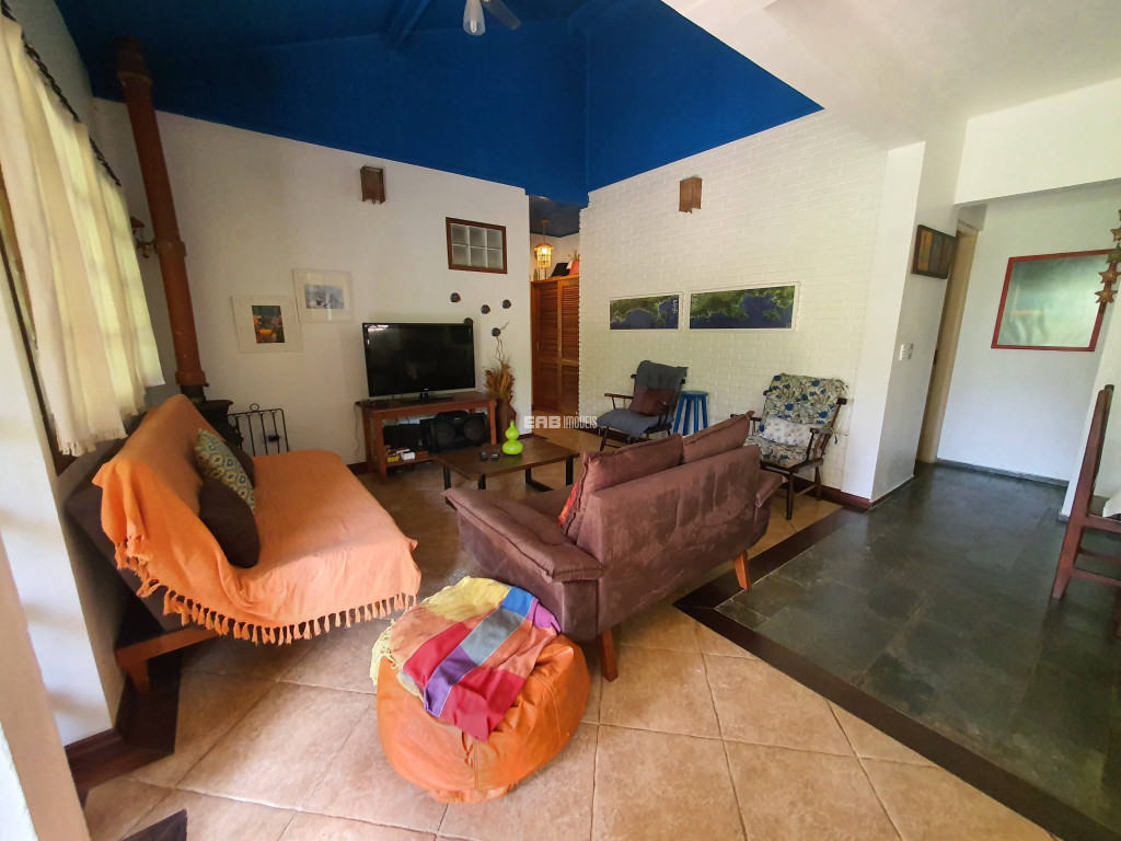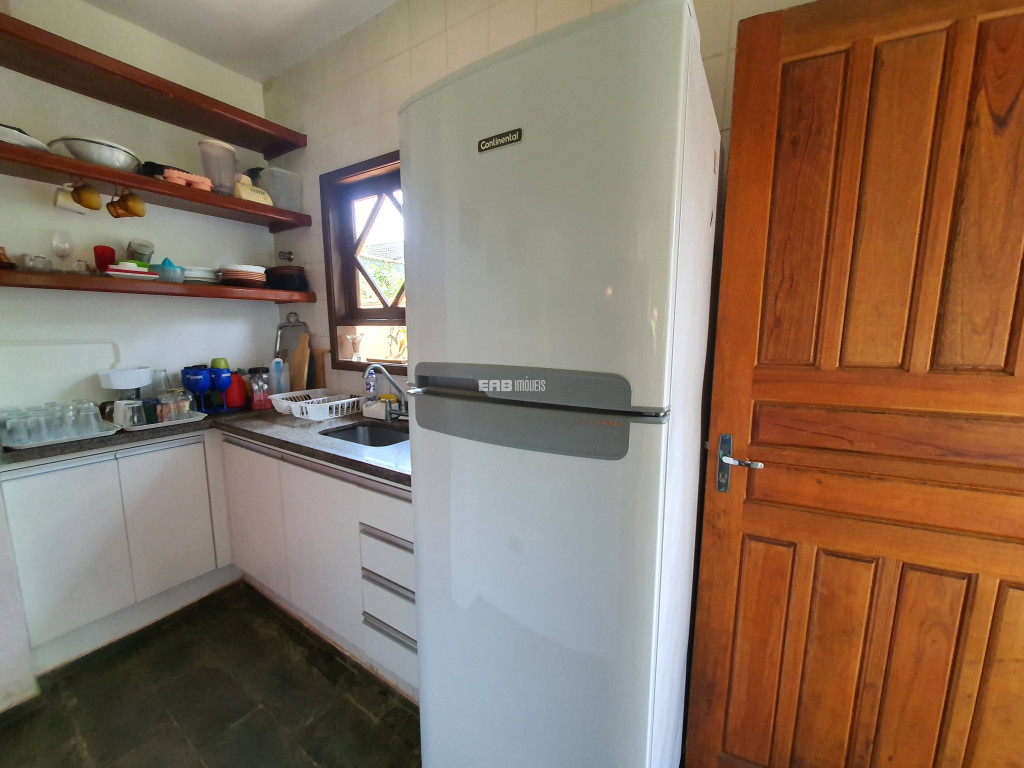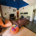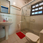 Primeira casa a partir da praia. Casa espaçosa, com 5 dormitórios, sendo 3 suítes, que se abrem para a varanda e recebem a brisa do mar. Alvenaria com acabamento de tijolo à vista, portas e janelas em mogno. Ampla e agradável varanda com churrasqueira, envolta por muito verde. Excelente localização, bem equipada e confortável.